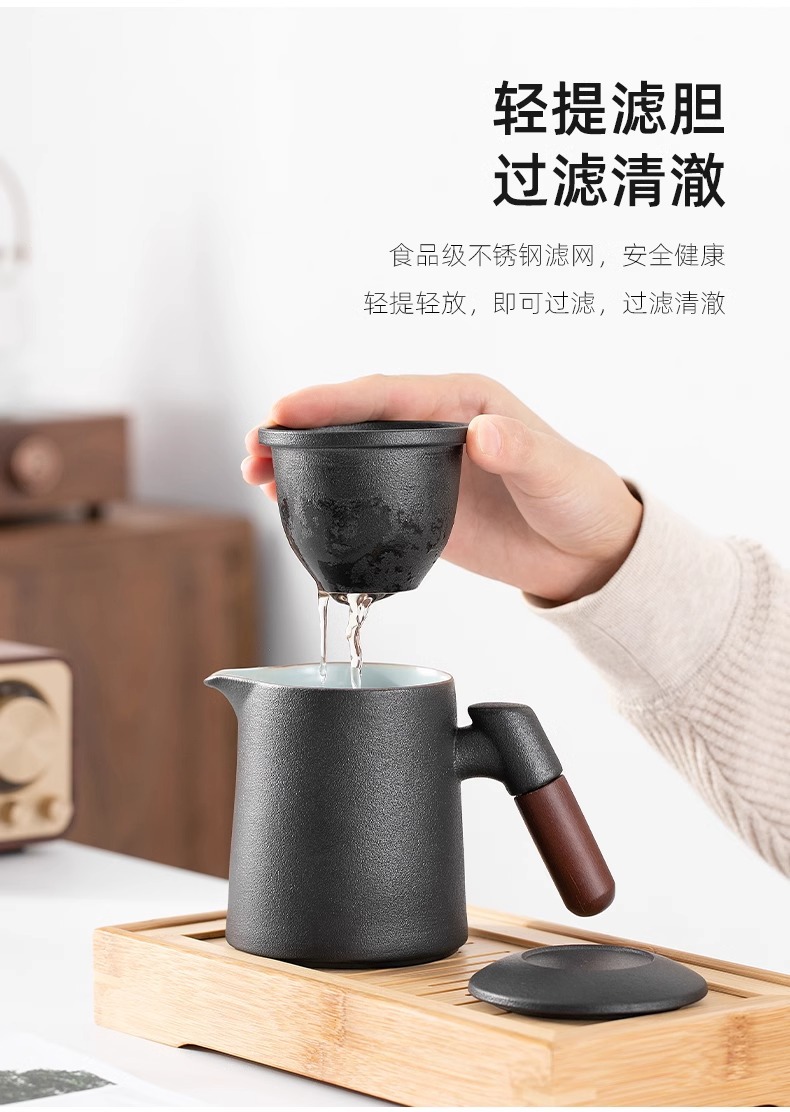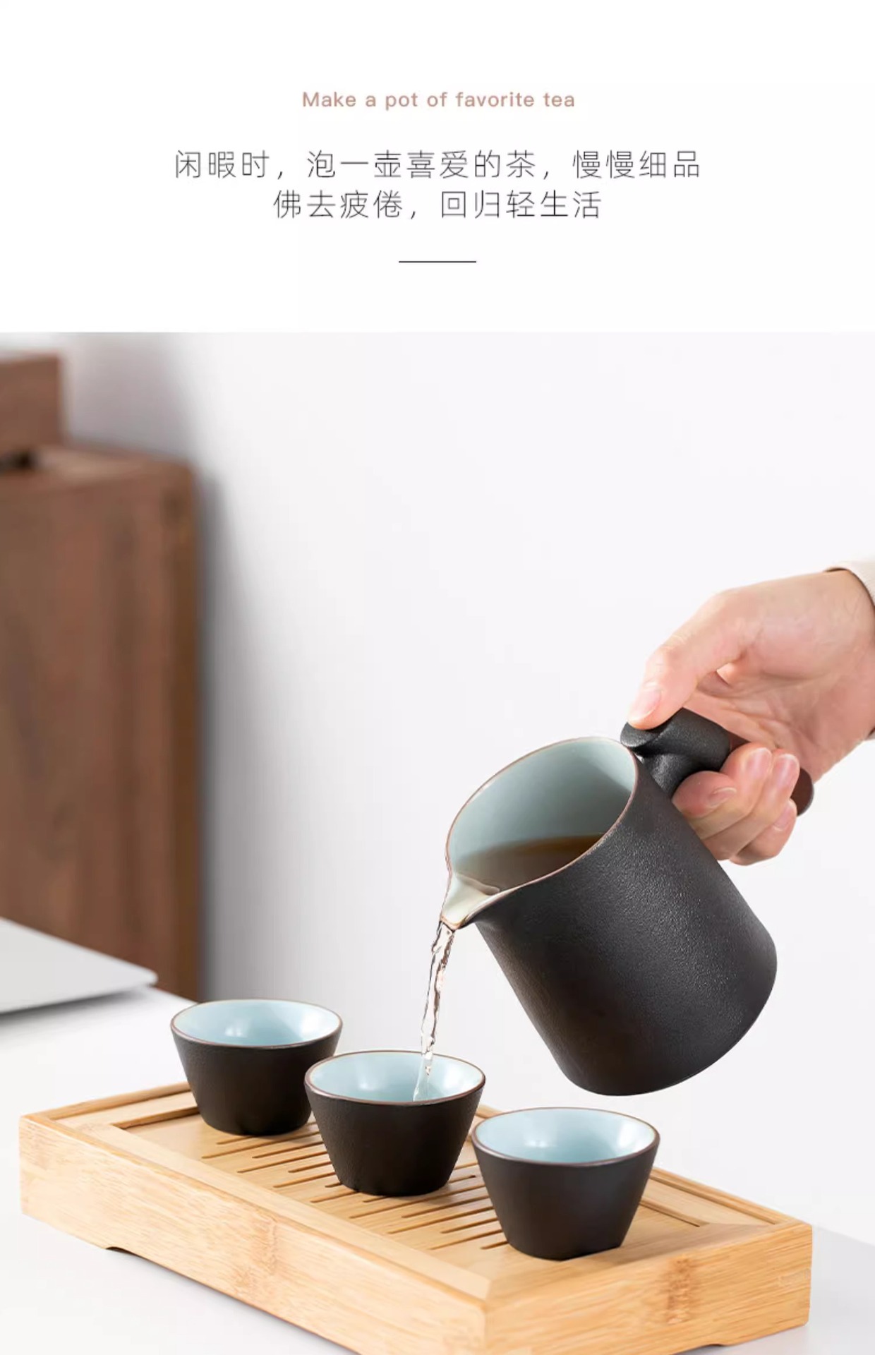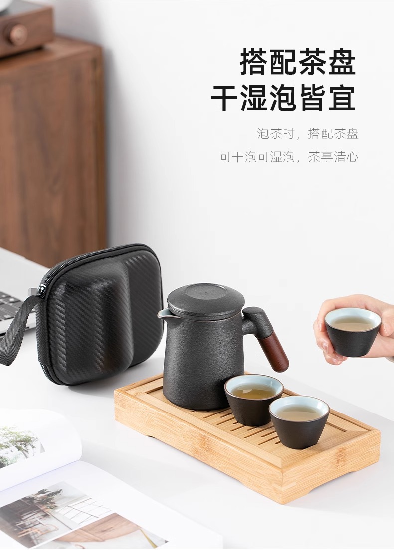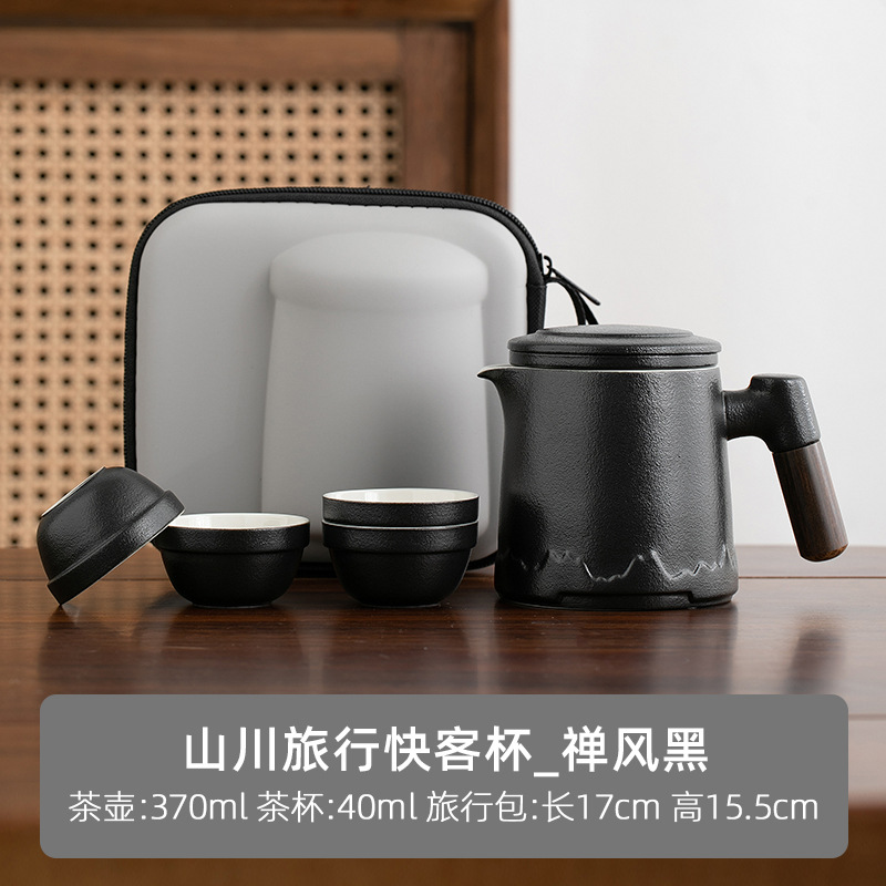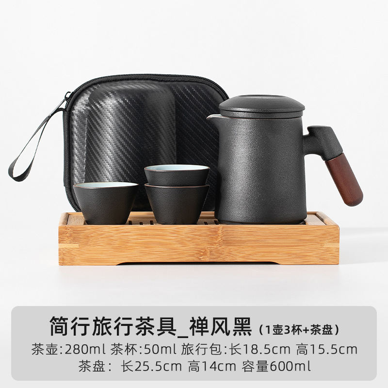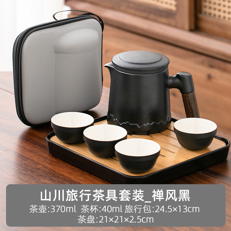 • Xinshan Lv 한 냄비, 네 컵 + 차 트레이 + 대형 여행 가방 - Yahei