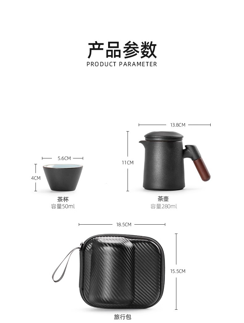 • 신산루 여행 냄비 4컵 + 휴대용 가방 + 차 트레이 - 야헤이