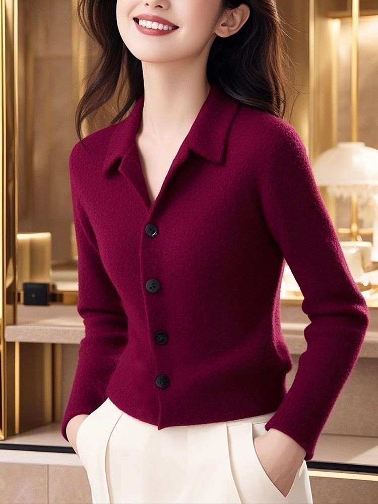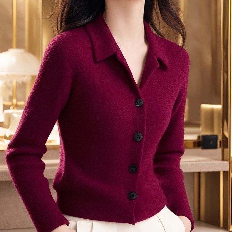 봄과 가을 하이 엔드 웨스턴 스타일 독특한 시크 탑 에이지 감소 프랑스 안 코라 레드 스웨터 니트 카디건