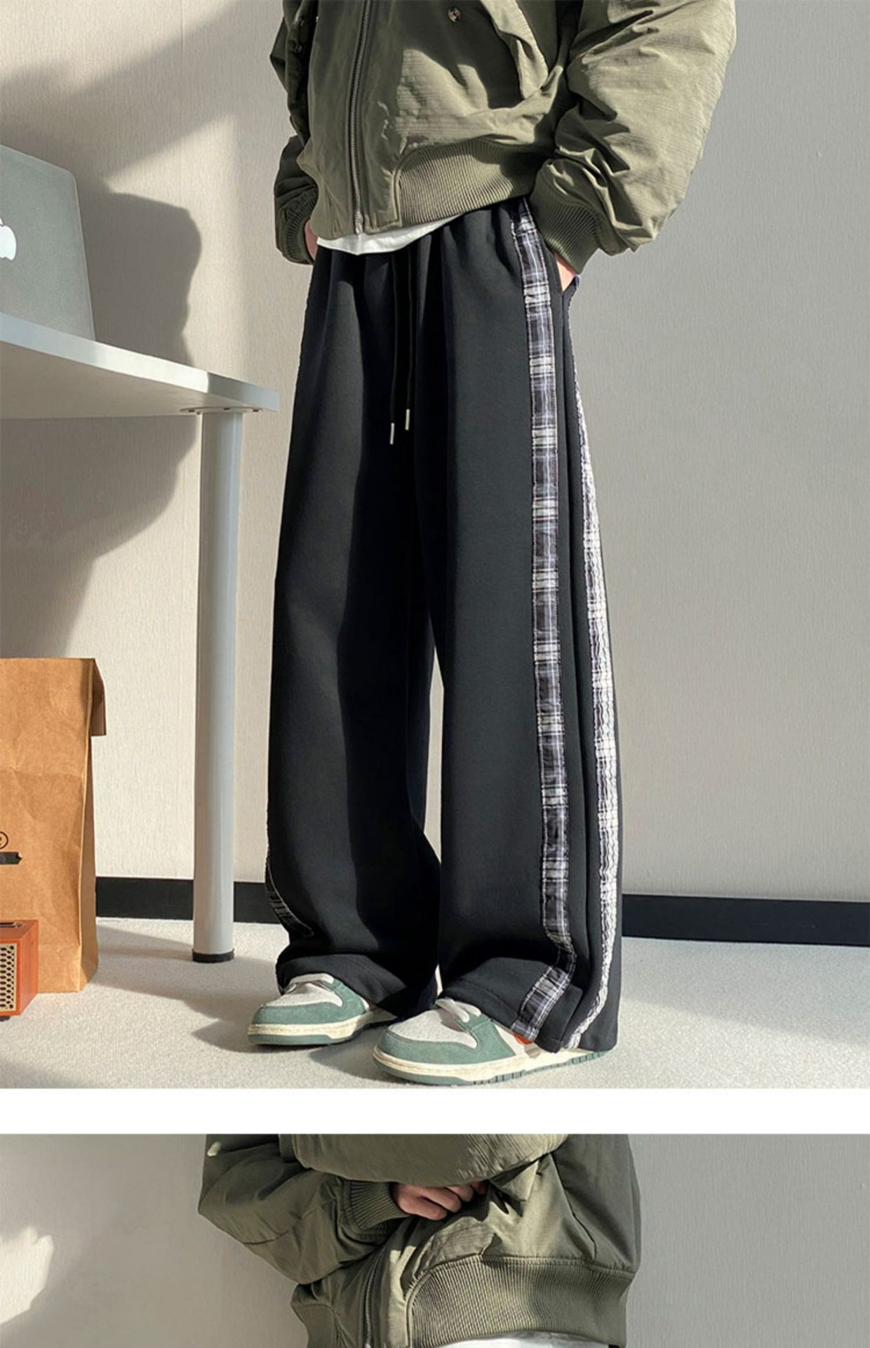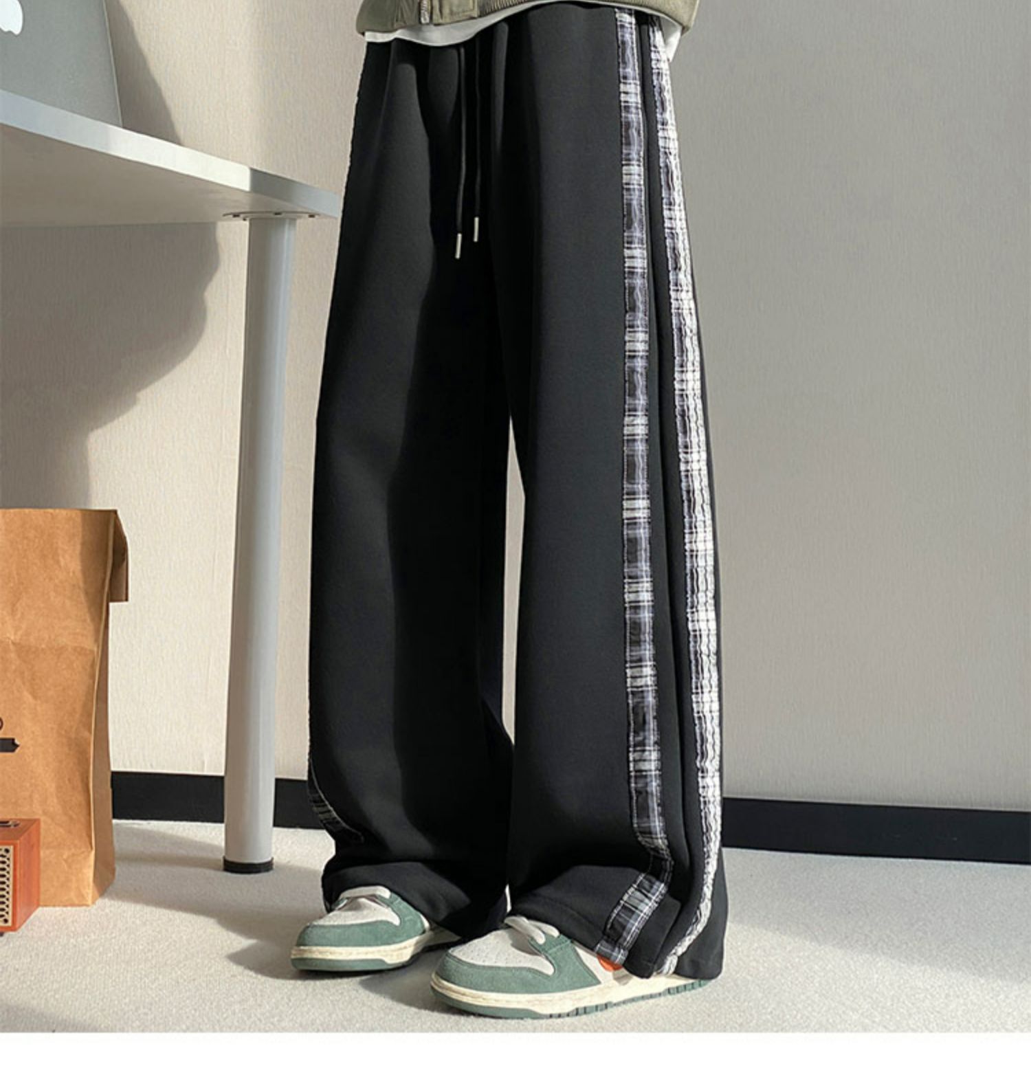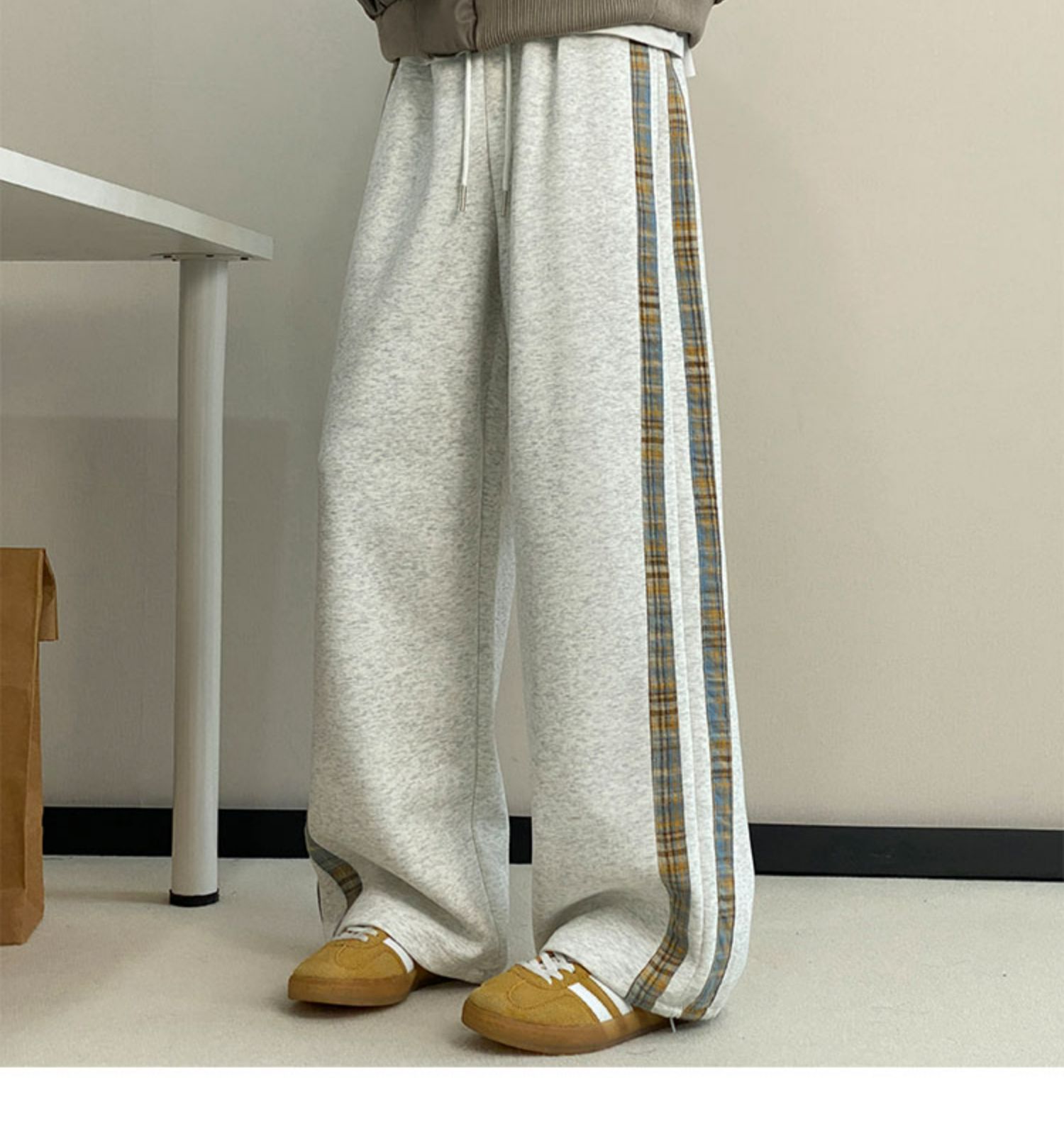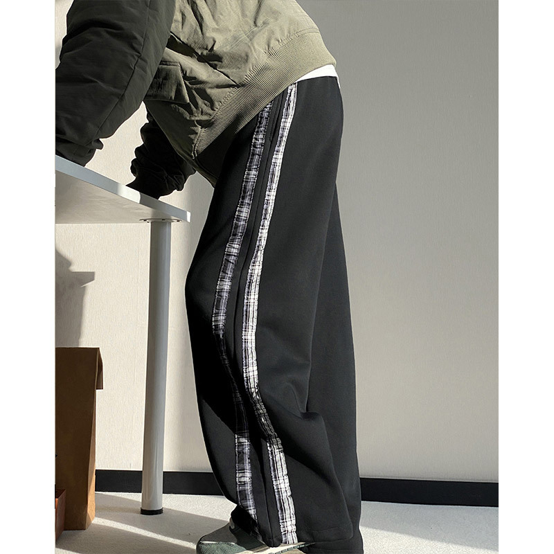 줄무늬 무거운 바지 남자 봄 2025 새로운 스포츠 바지 유행 브랜드 십대 미국 스타일 넓은 다리 캐주얼 바지스토어 가기