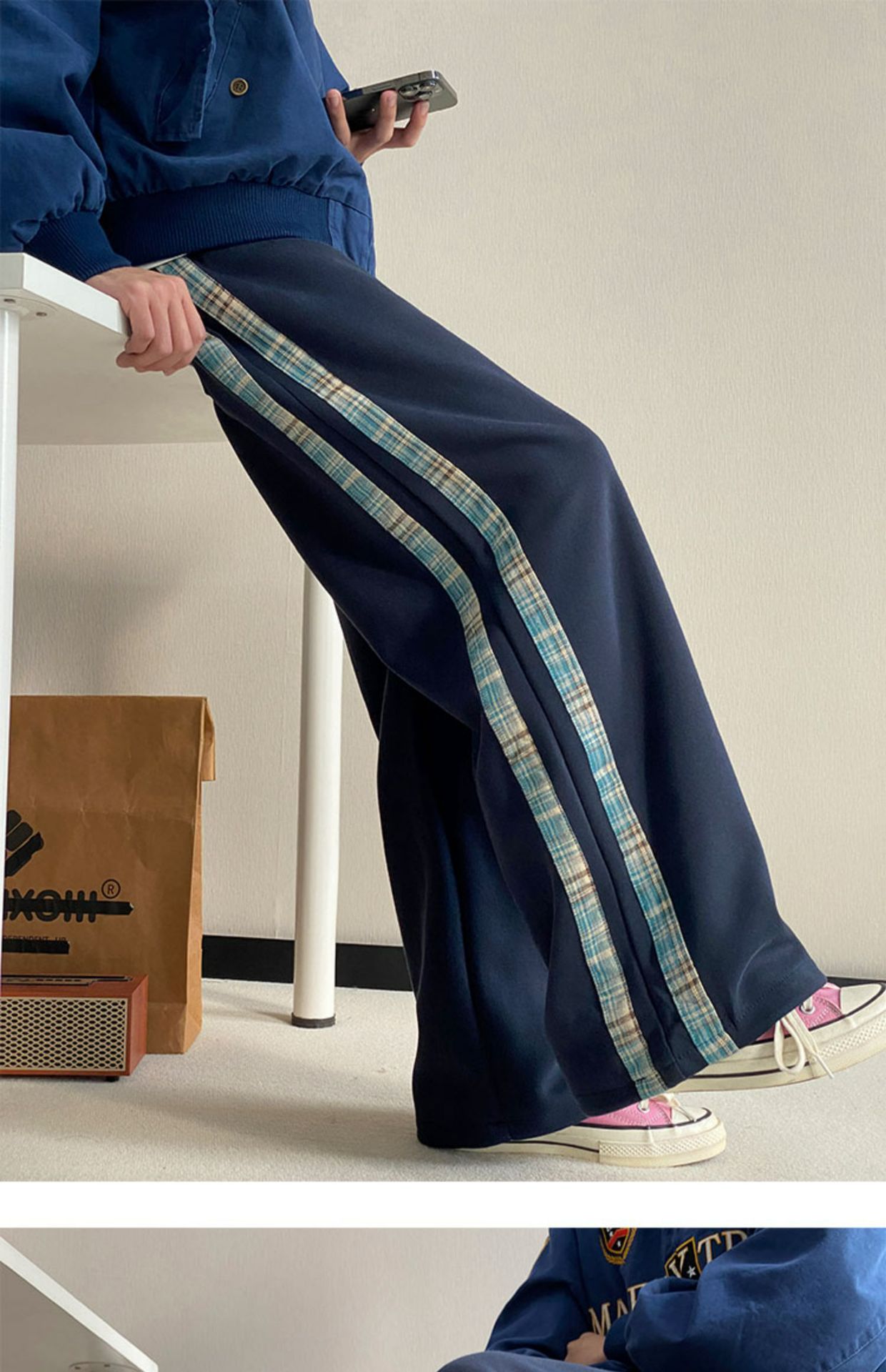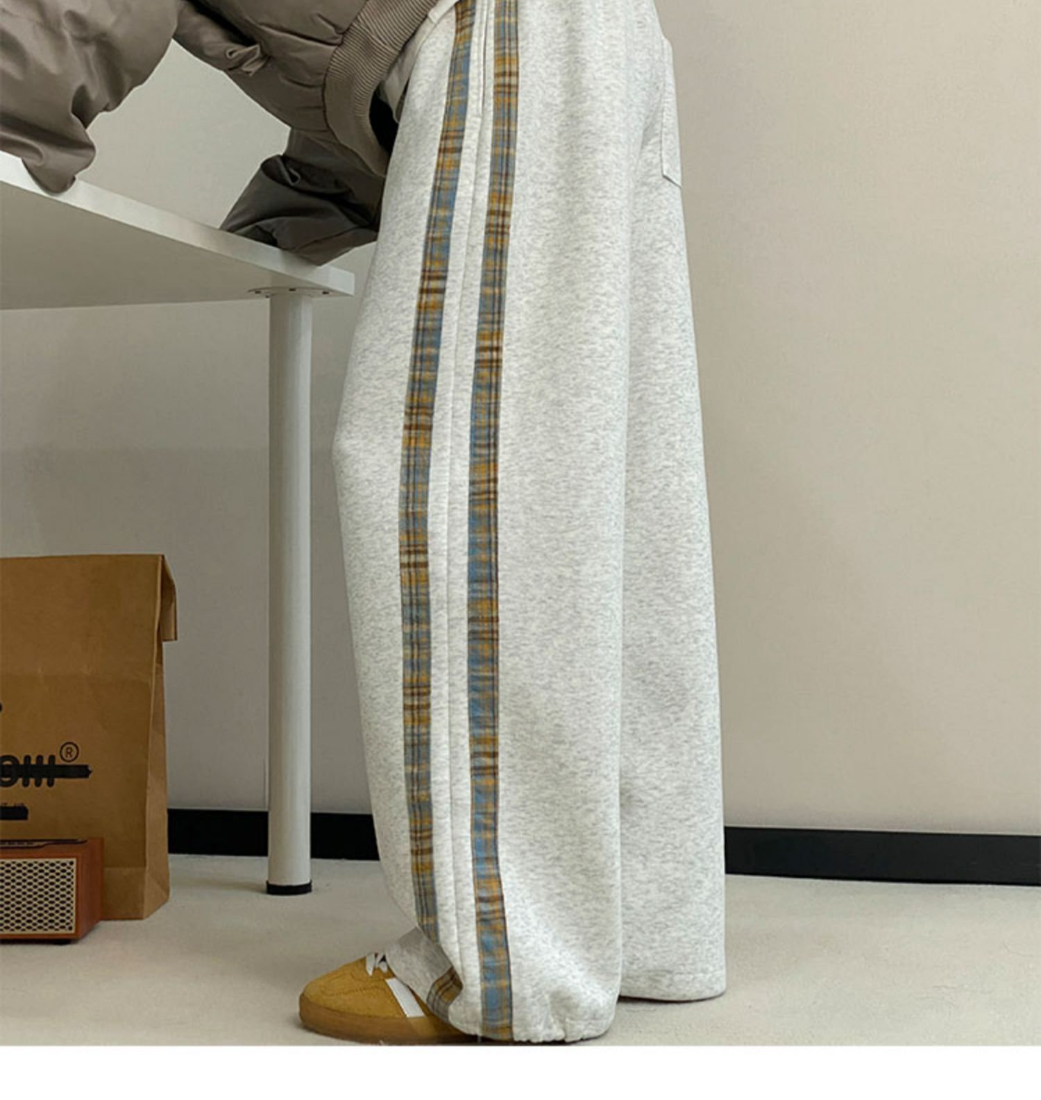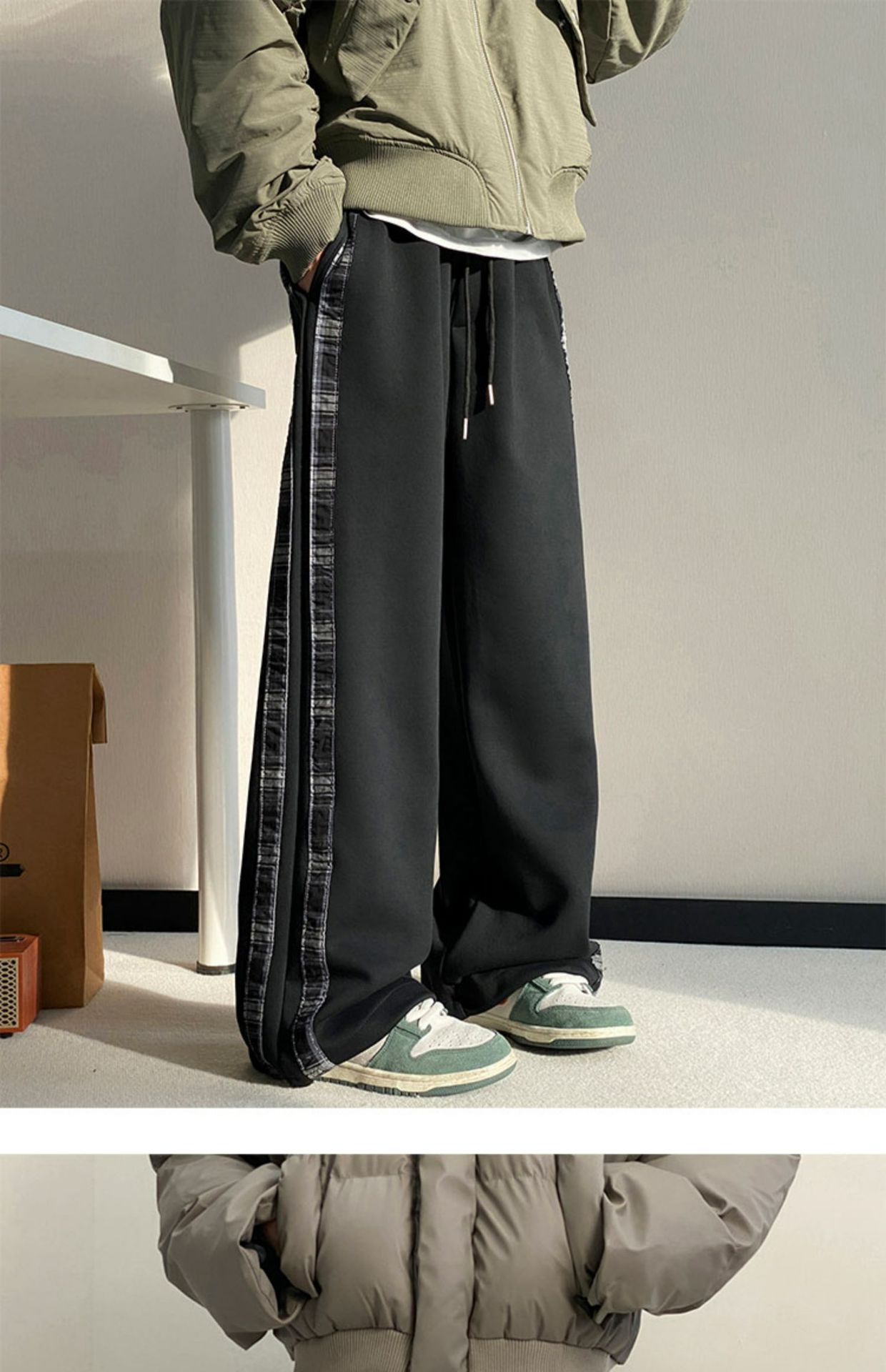 줄무늬 무거운 바지 남자 봄 2025 새로운 스포츠 바지 유행 브랜드 십대 미국 스타일 넓은 다리 캐주얼 바지스토어 가기