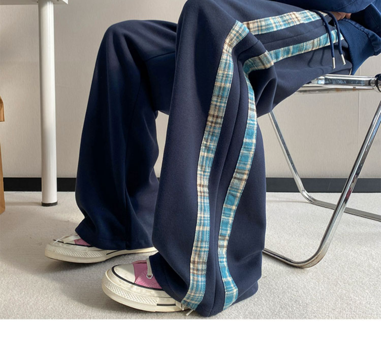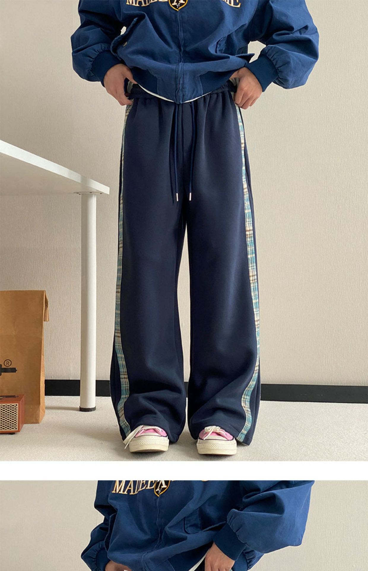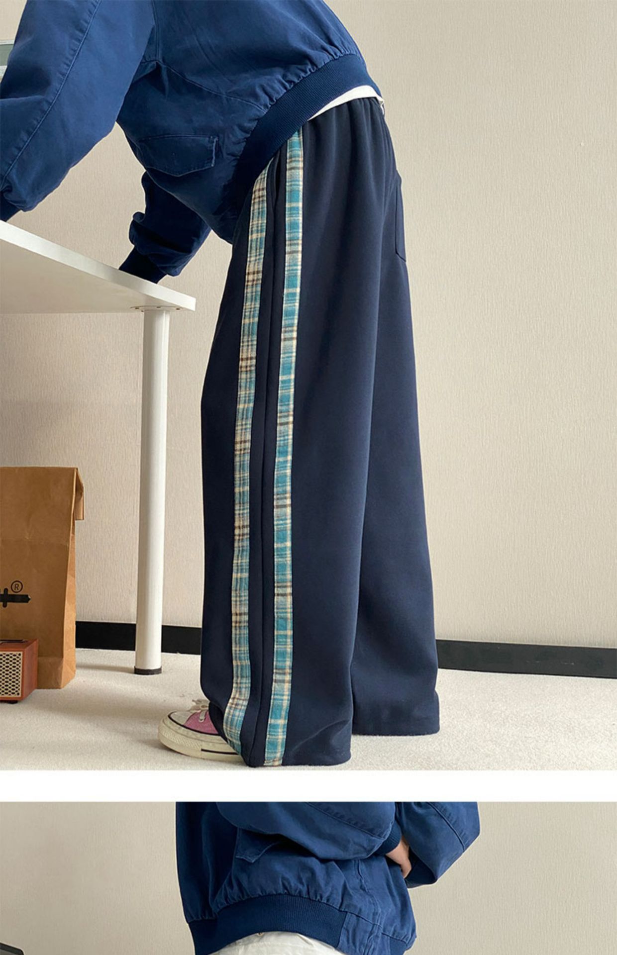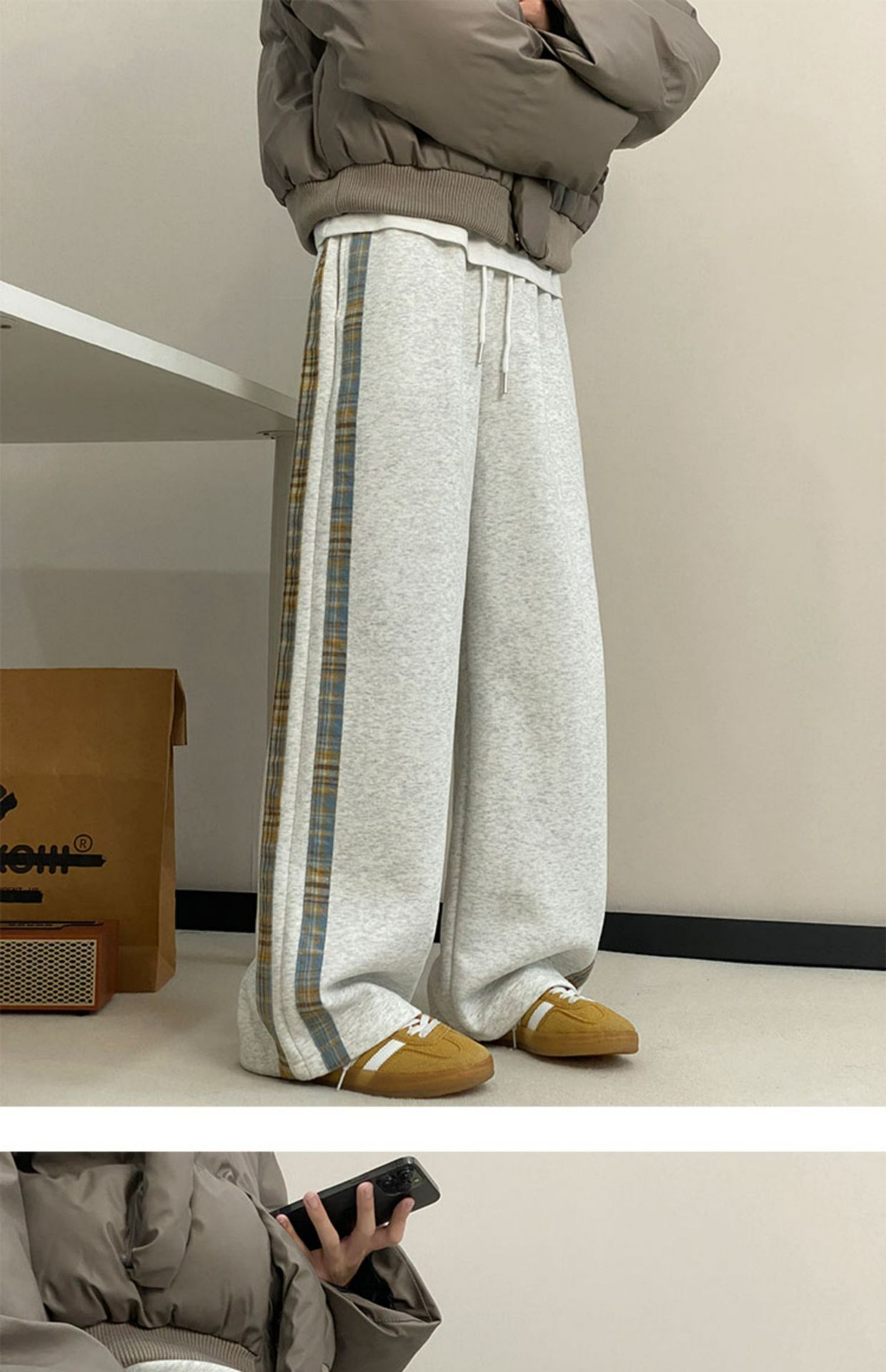 줄무늬 무거운 바지 남자 봄 2025 새로운 스포츠 바지 유행 브랜드 십대 미국 스타일 넓은 다리 캐주얼 바지스토어 가기