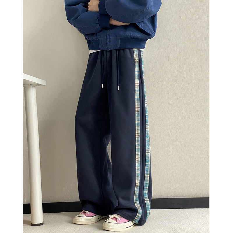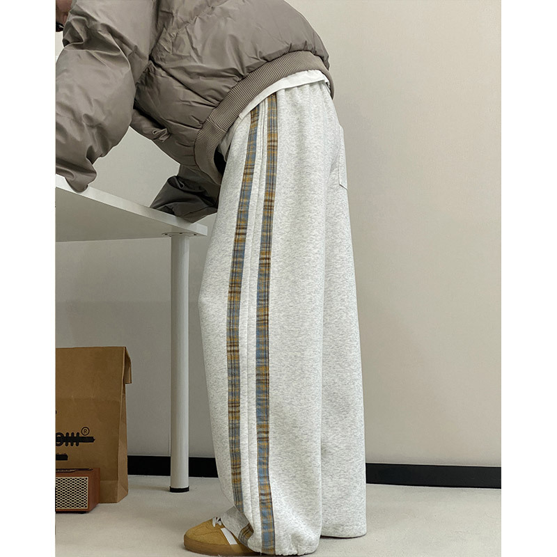 줄무늬 무거운 바지 남자 봄 2025 새로운 스포츠 바지 유행 브랜드 십대 미국 스타일 넓은 다리 캐주얼 바지