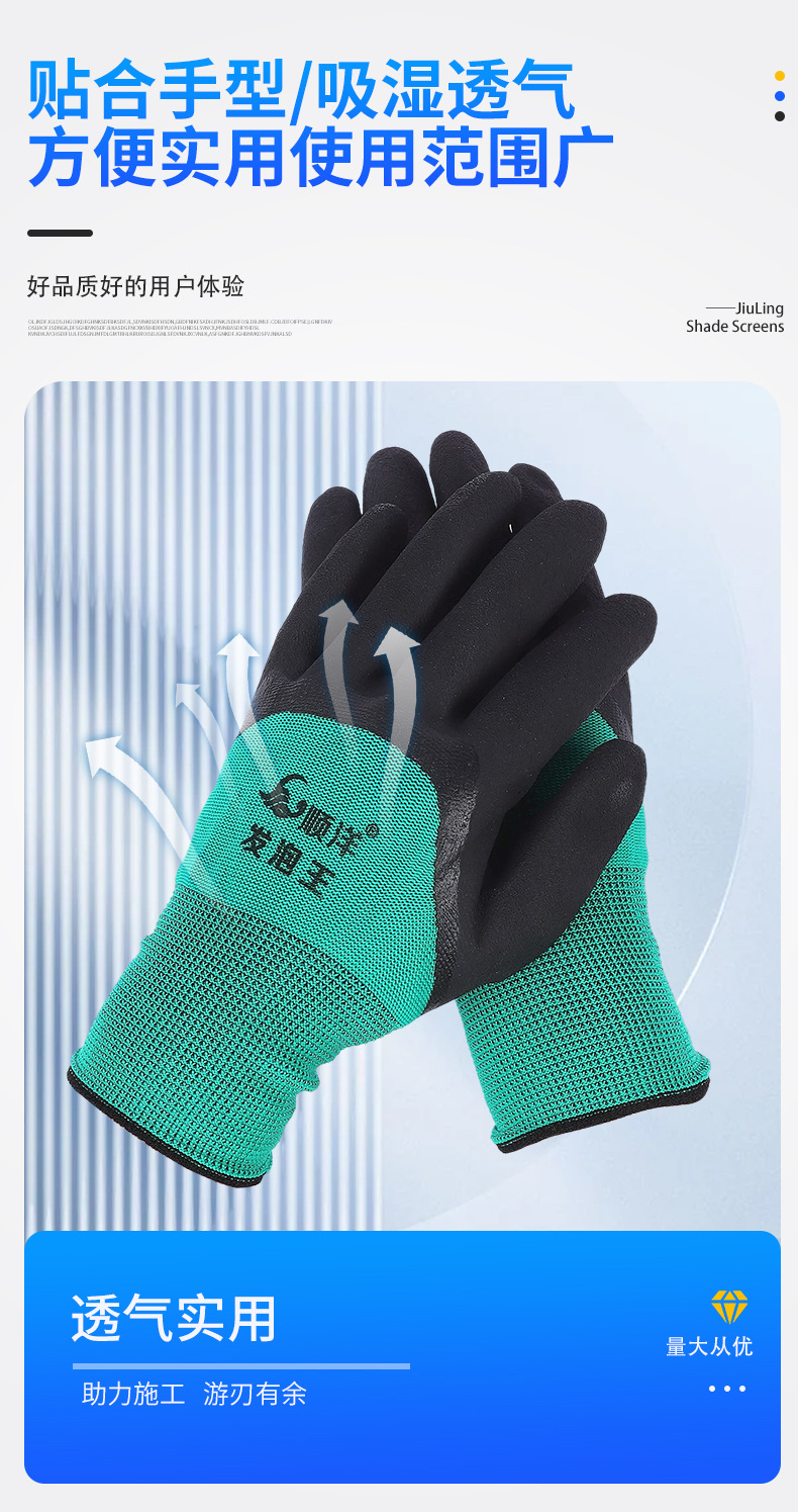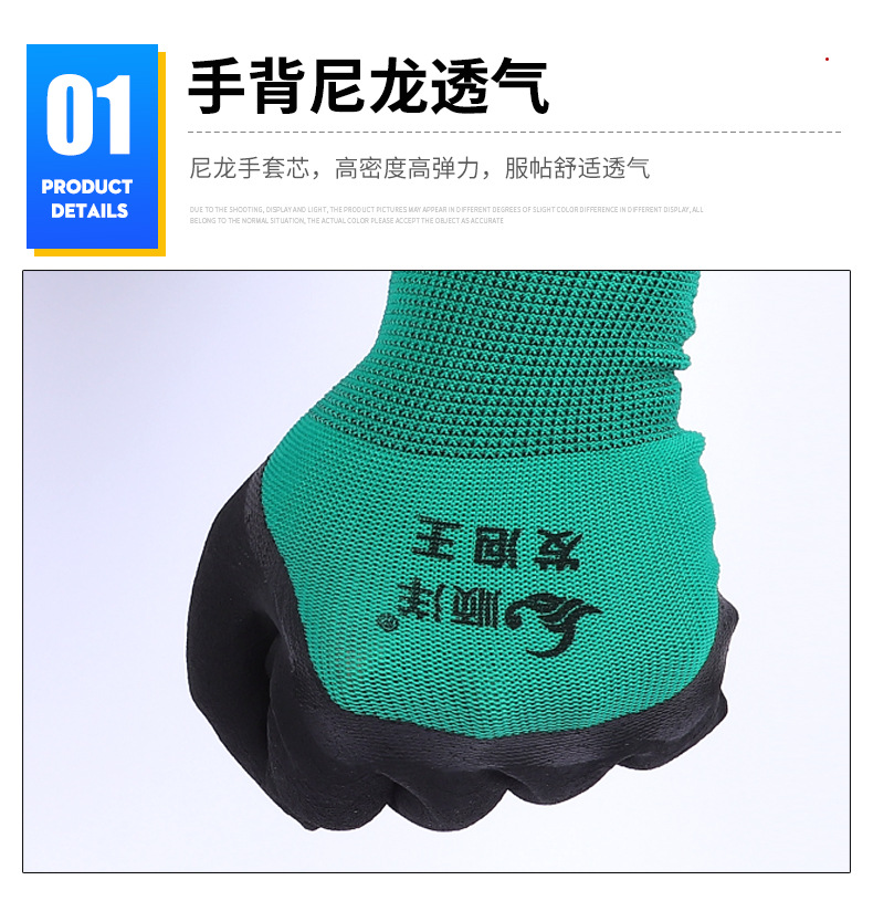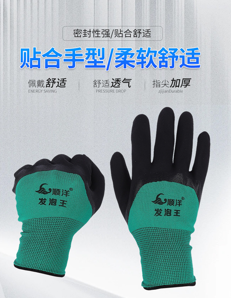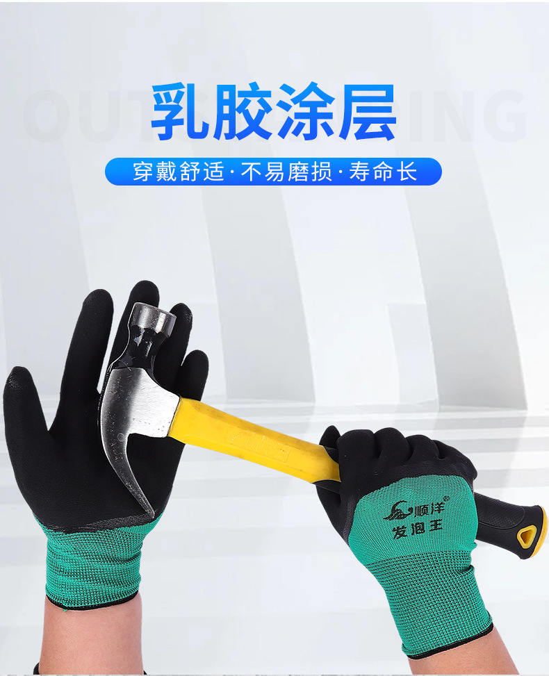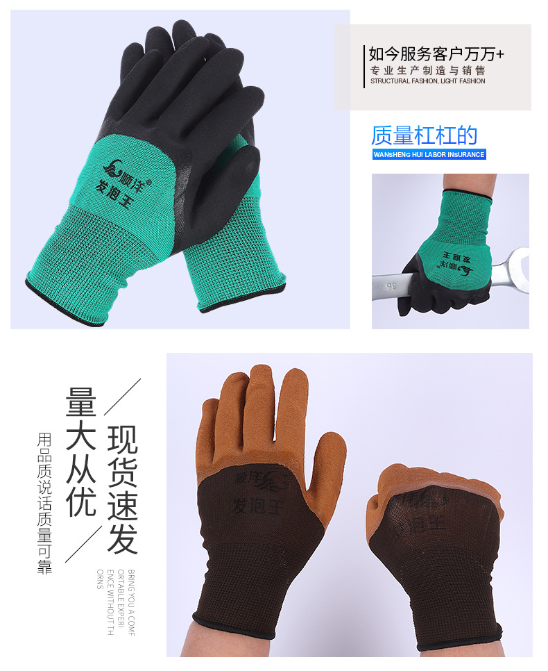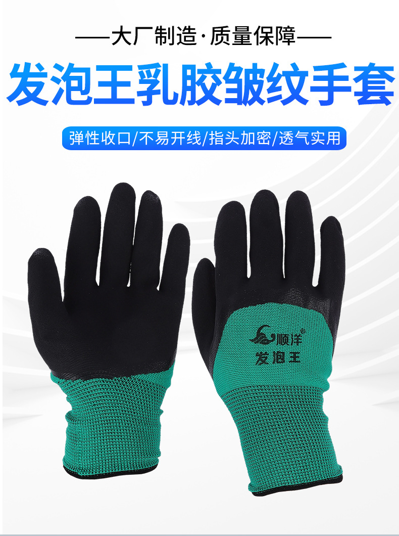 거품 왕 라텍스 주름 장갑 제조 업체 도매 강화 손가락 두껍게 미끄럼 방지 라텍스 주름 노동 장갑스토어 가기