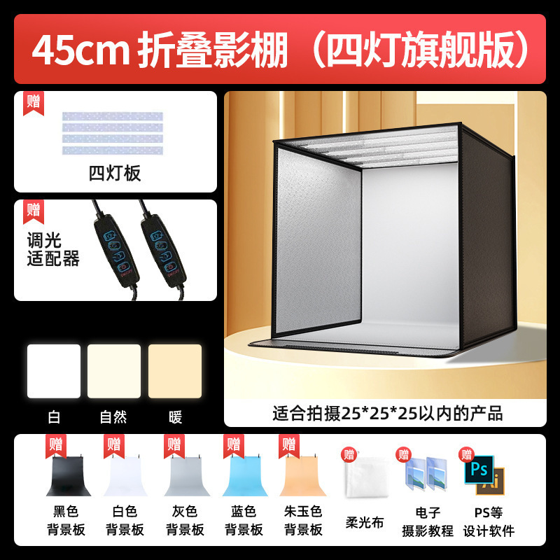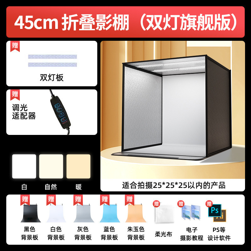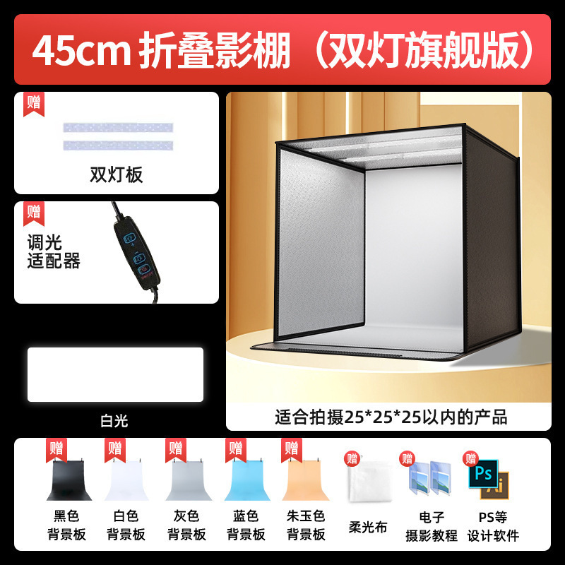 • 브라이트닝 플래그십 버전-45CM [이중 조명/백색광] 접이식 스튜디오