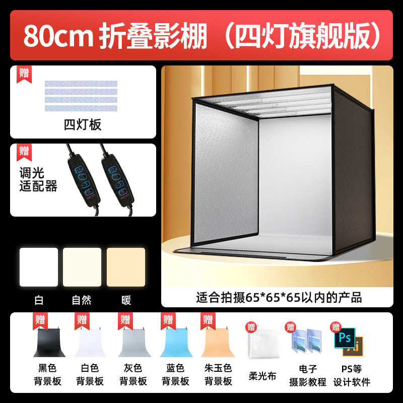 • 브라이트닝 플래그십 버전-80cm [4등/백색광] 접이식 스튜디오