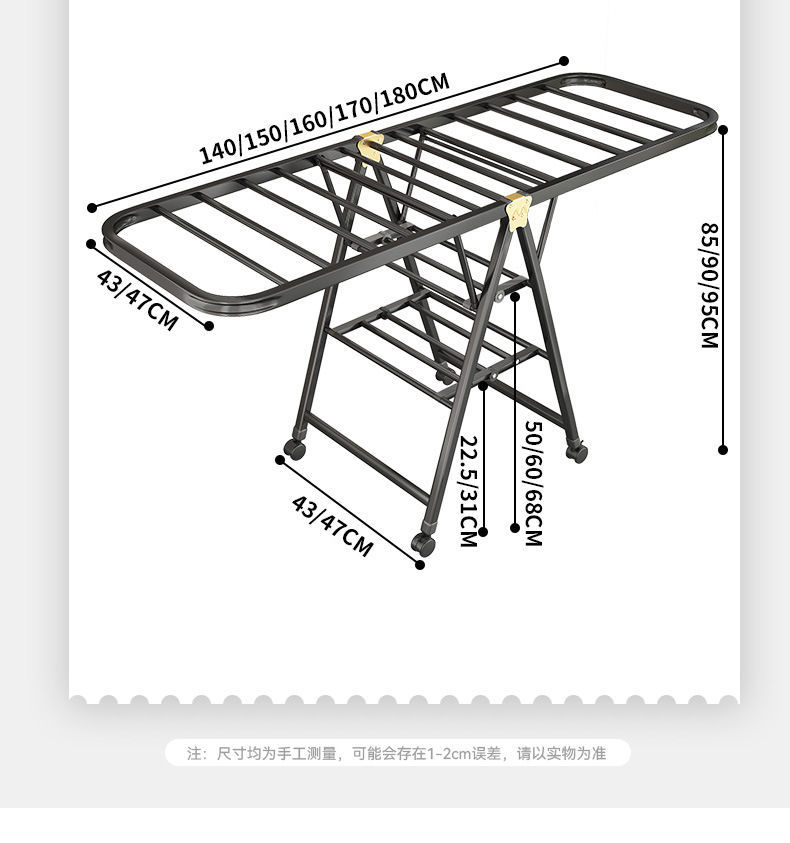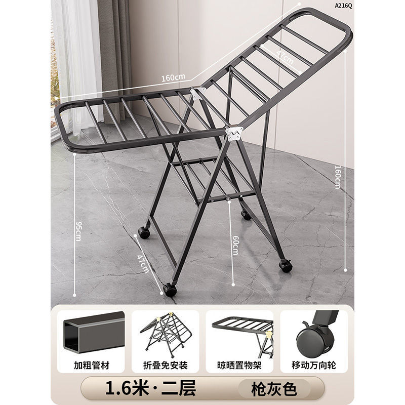 건조 랙 실내 바닥 접히는 날개 가구 옷 막대 시원한 발코니 아기 옷 옷걸이 스테인레스 카본 스틸