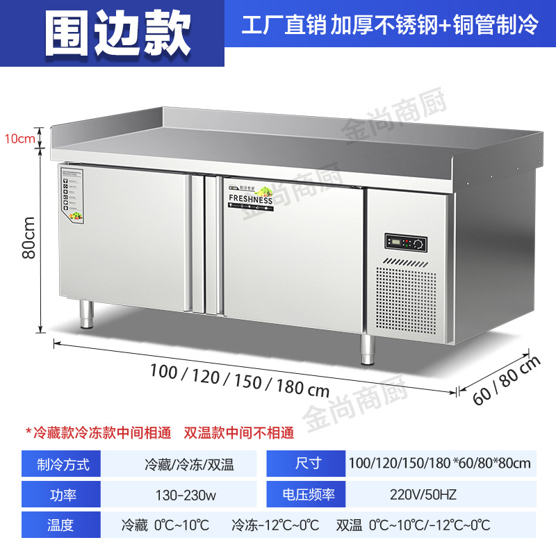 콘솔 냉동고 주방 라면 도마 상업용 냉장고 콜드 에지 플랫 신선한 두 배 온도 스테인레스 스틸 냉동고