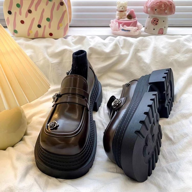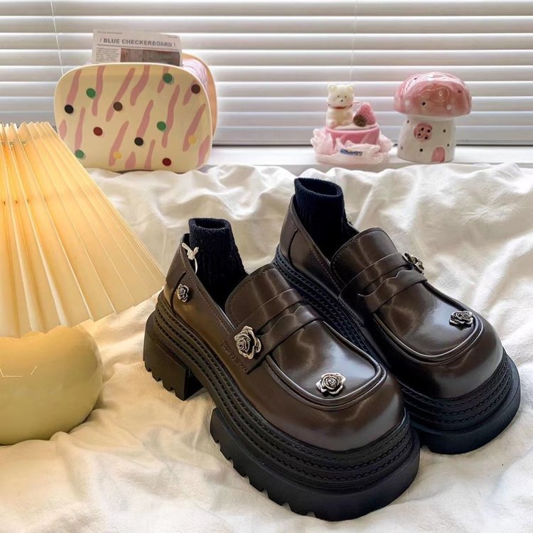 Camellia Loafers 2025 봄과 가을 새로운 일본 JK 올매치 복고풍 두꺼운 여성 신발 다크 브라운 작은 가죽 신발스토어 가기