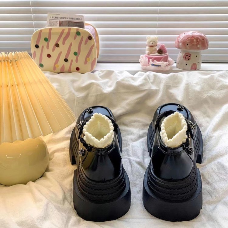 Camellia Loafers 2025 봄과 가을 새로운 일본 JK 올매치 복고풍 두꺼운 여성 신발 다크 브라운 작은 가죽 신발