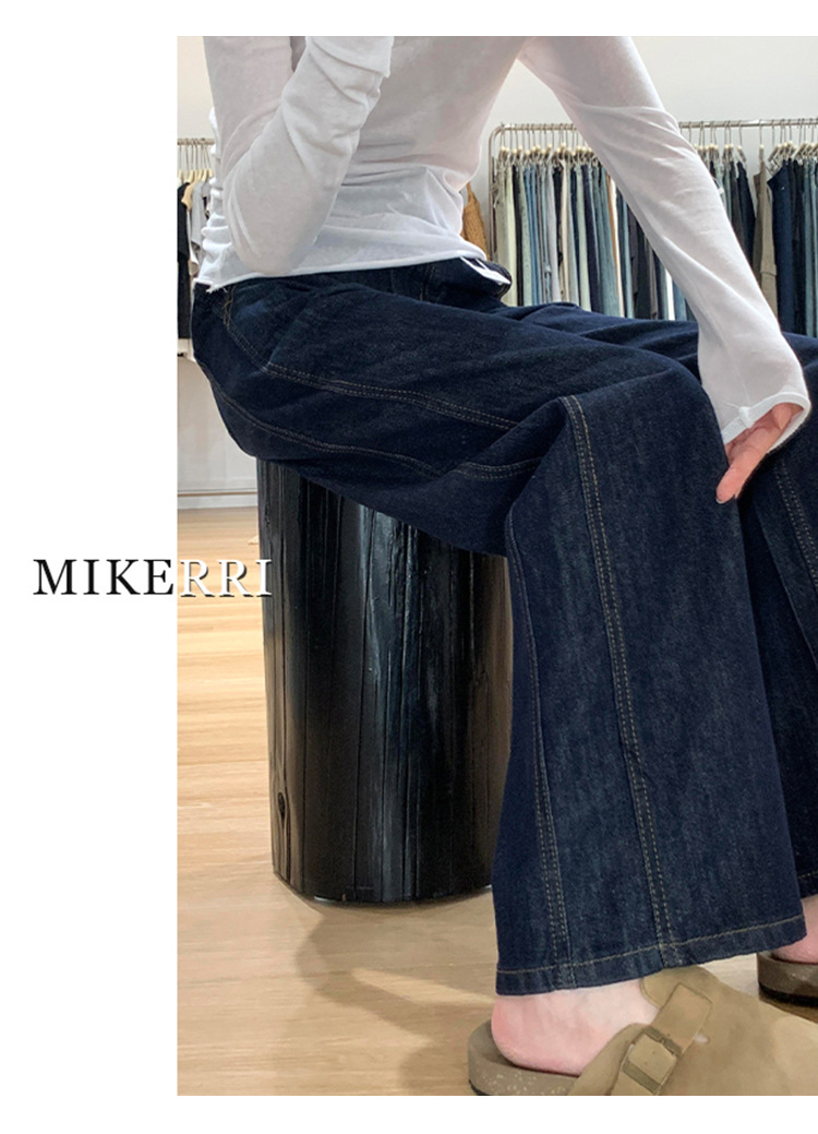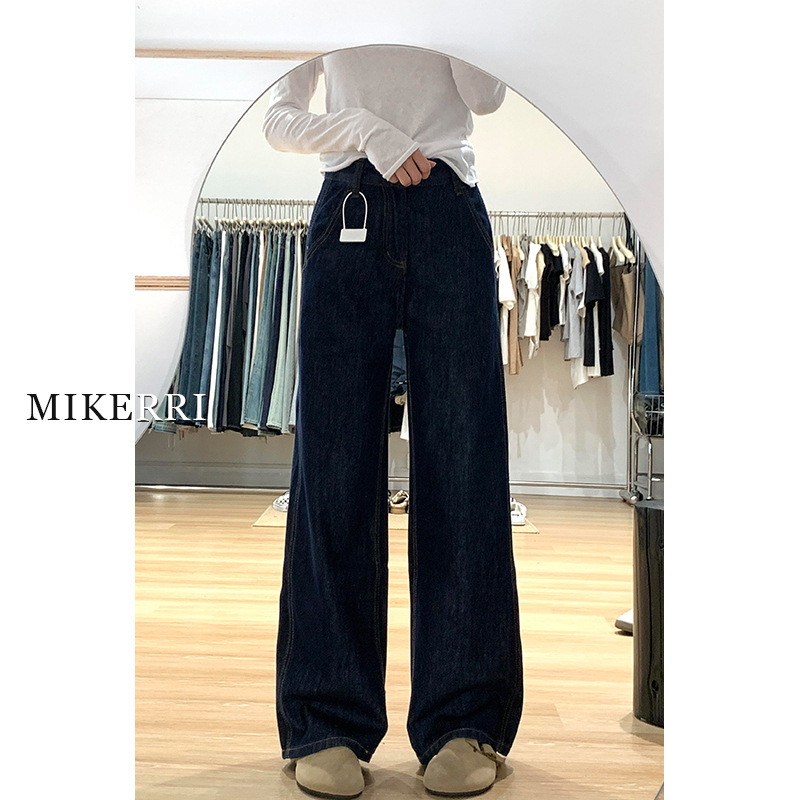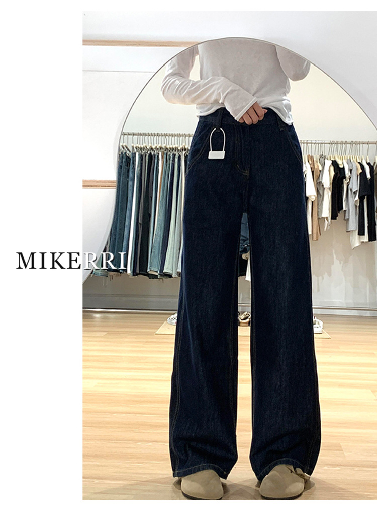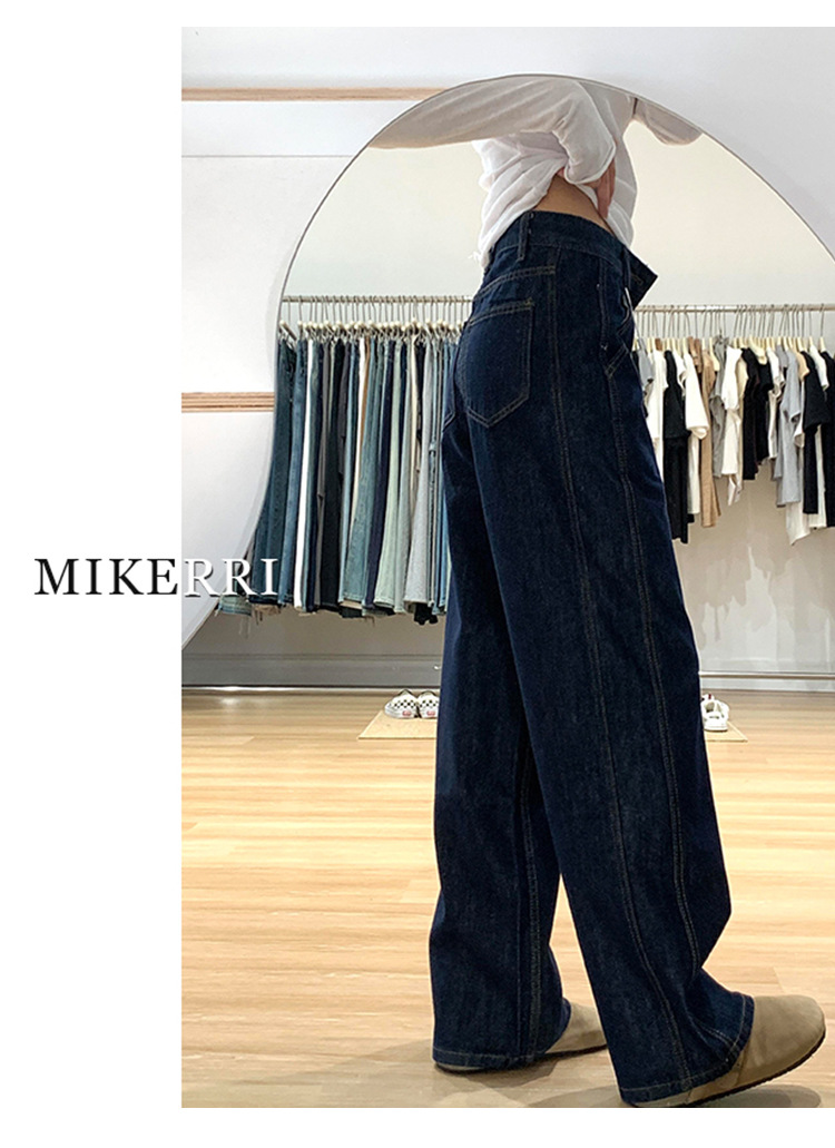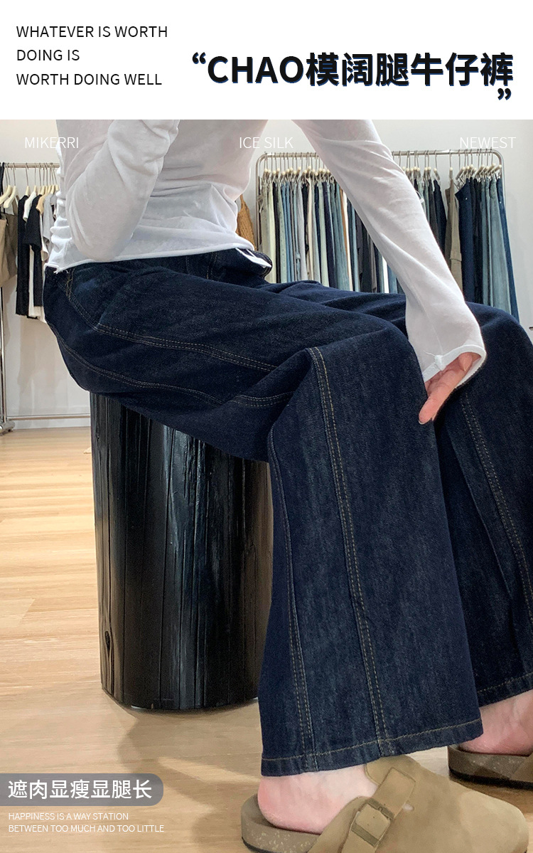 다크 블루 넓은 다리 청바지 여성의 여름 새로운 플러스 사이즈 통통녀 배 모양 몸 느슨한 슬림 높은 허리 스트레이트 바지스토어 가기
