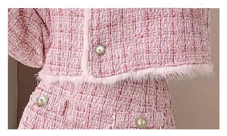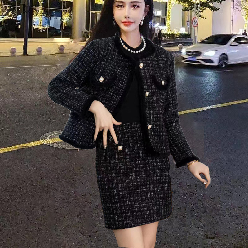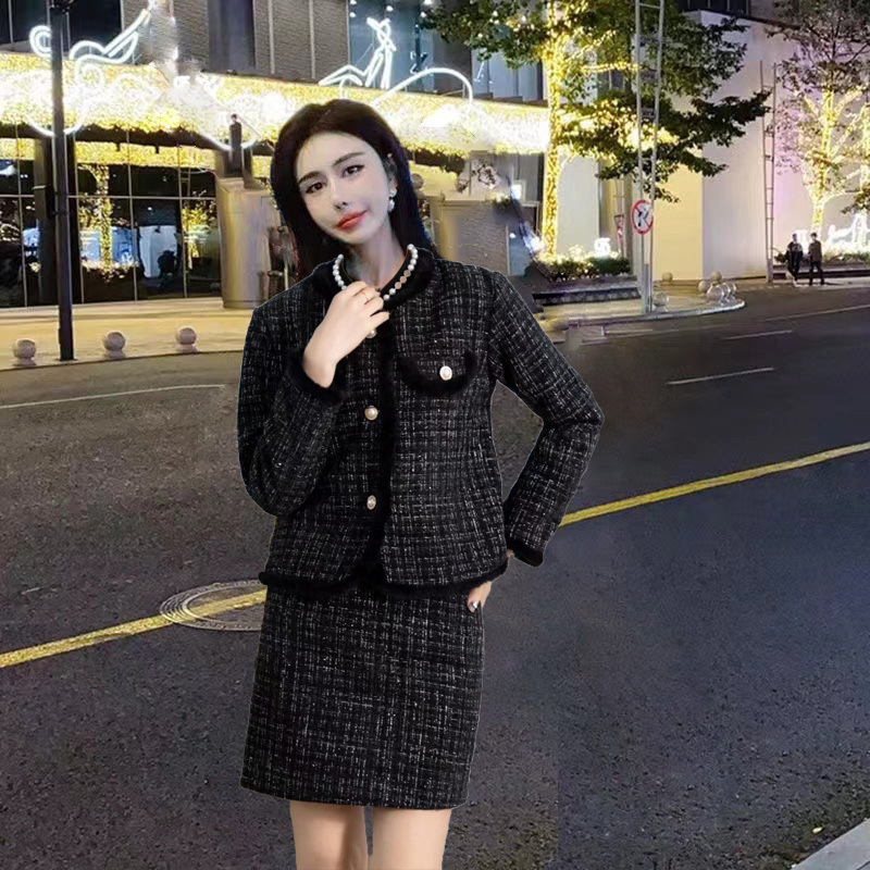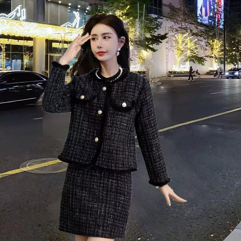 트위드 하이 엔드 스타일 샤넬 패션 세트 여성의 가을과 겨울 새로운 두꺼운 짧은 재킷 스커트 투피스 세트