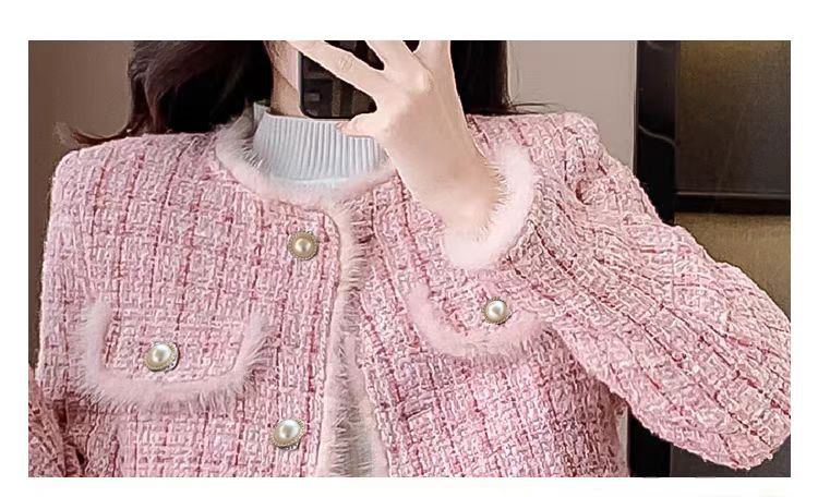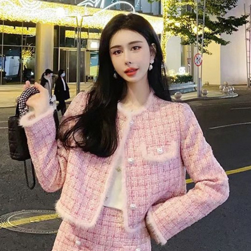 트위드 하이 엔드 스타일 샤넬 패션 세트 여성의 가을과 겨울 새로운 두꺼운 짧은 재킷 스커트 투피스 세트스토어 가기