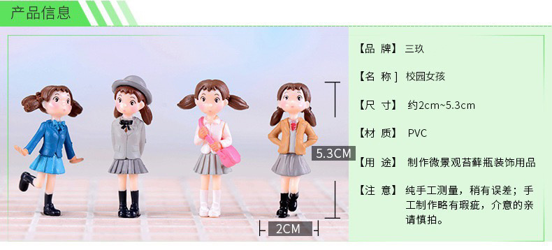 캠퍼스 소녀 귀여운 작은 소녀 샤오메이 PVC 캐릭터 액세서리 인형 집 소재 다육 질 풍경 장식 장식품
