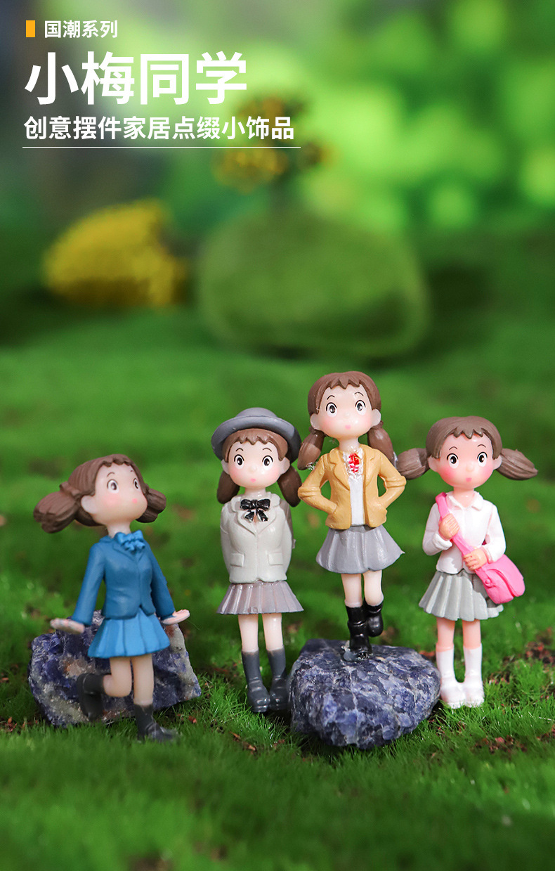 캠퍼스 소녀 귀여운 작은 소녀 샤오메이 PVC 캐릭터 액세서리 인형 집 소재 다육 질 풍경 장식 장식품스토어 가기