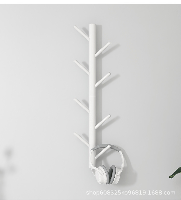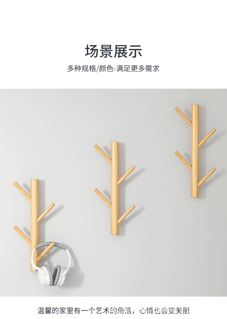 • 펀칭 없음 벽걸이 후크 6개, 목재 색상