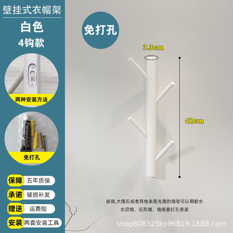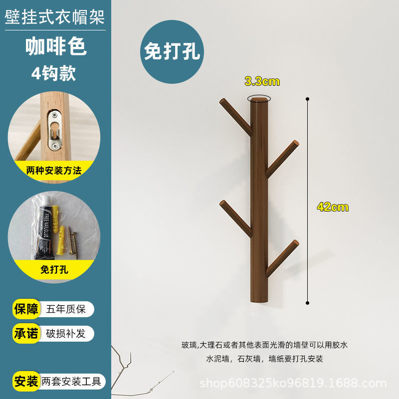 • 펀칭 없음 벽걸이 후크 4개, 목재 색상