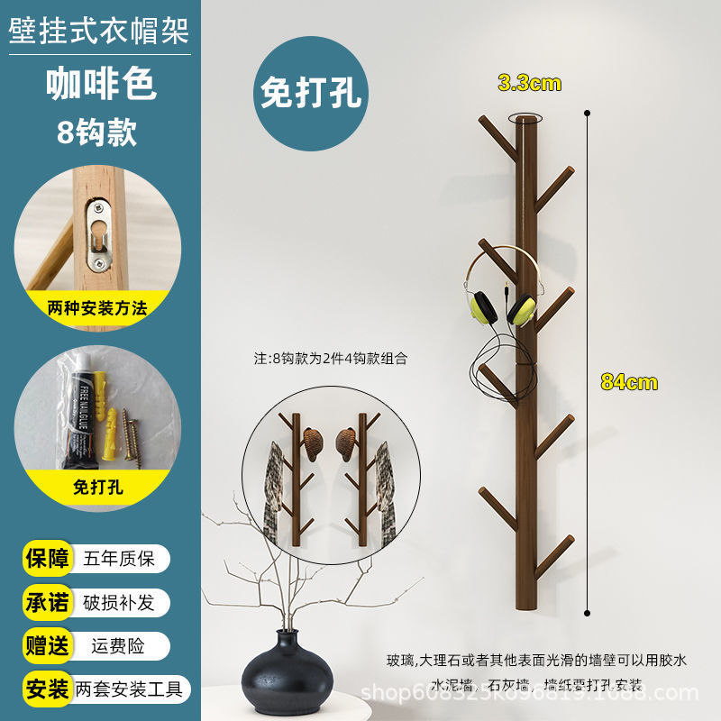 • 펀칭 없음 벽걸이 후크 8개, 목재 색상