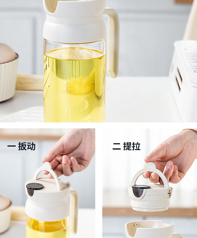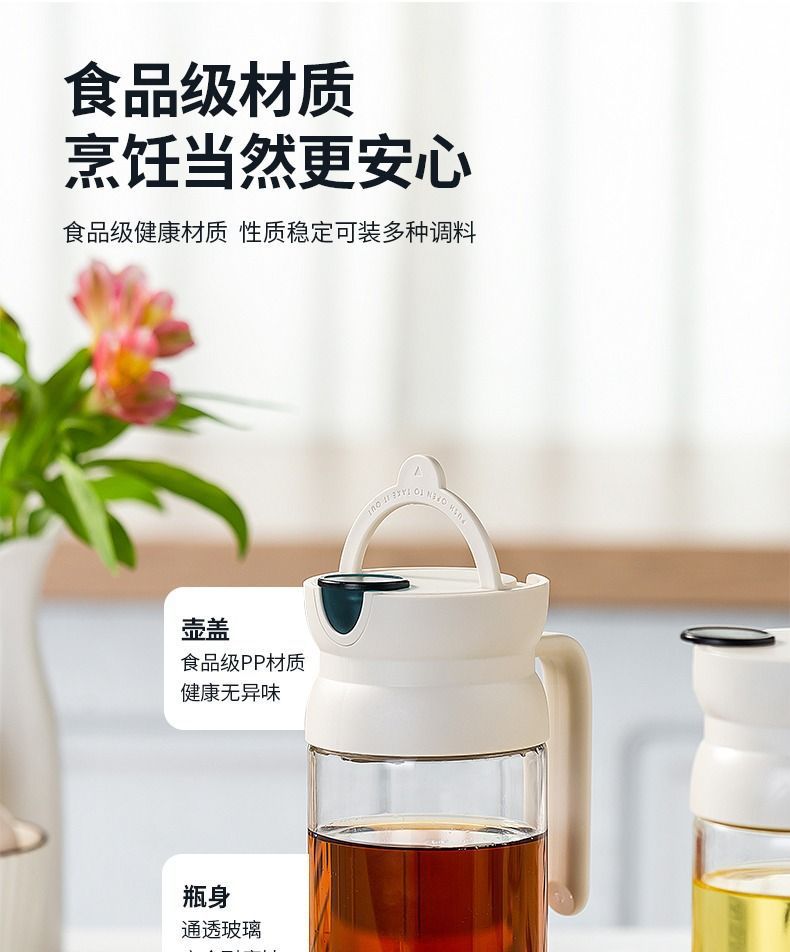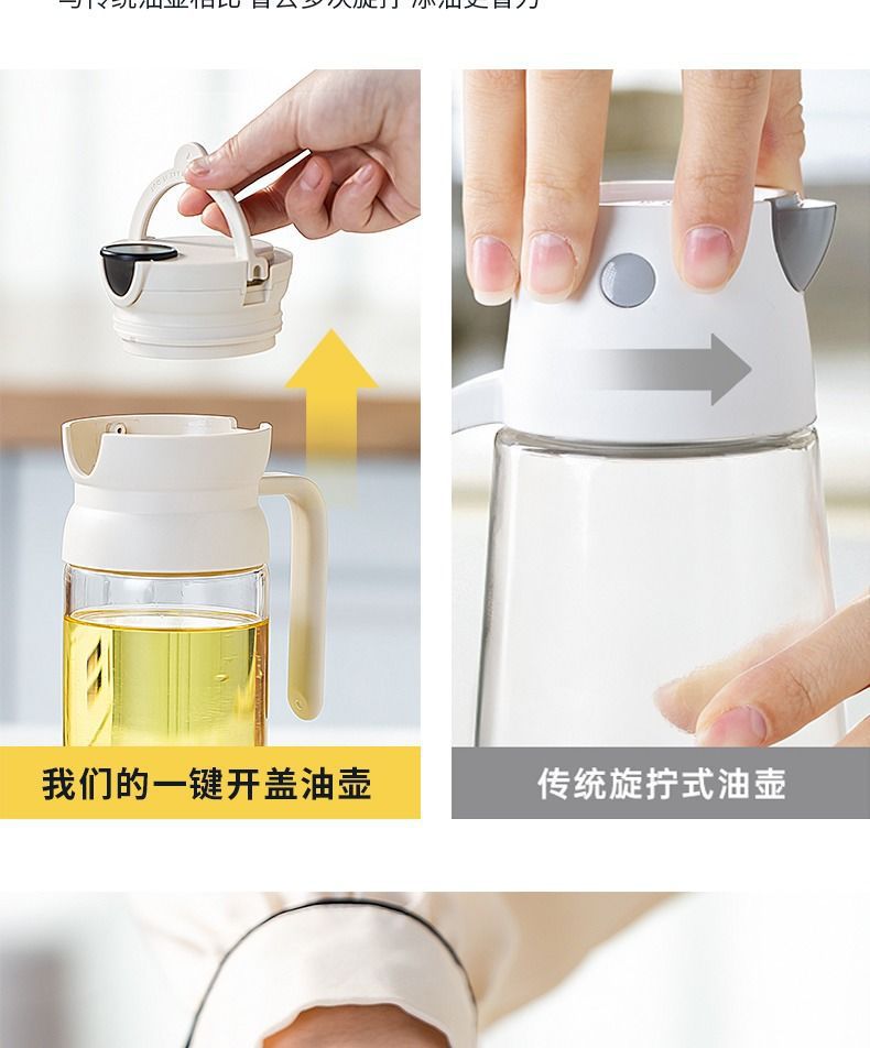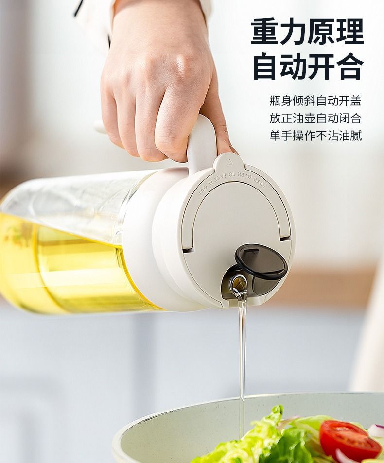 가정용 유리 자동 오픈 리드 오일 포트 교수형 오일 누출 방지 간장 식초 조미료 병 대용량 오일 포트 주방스토어 가기