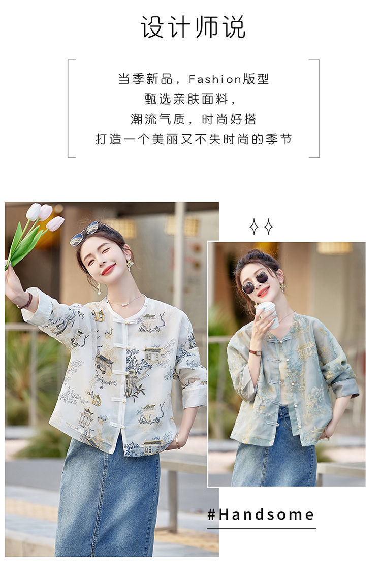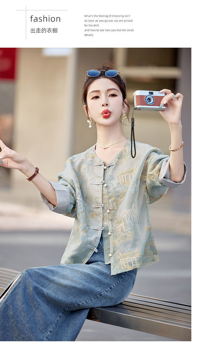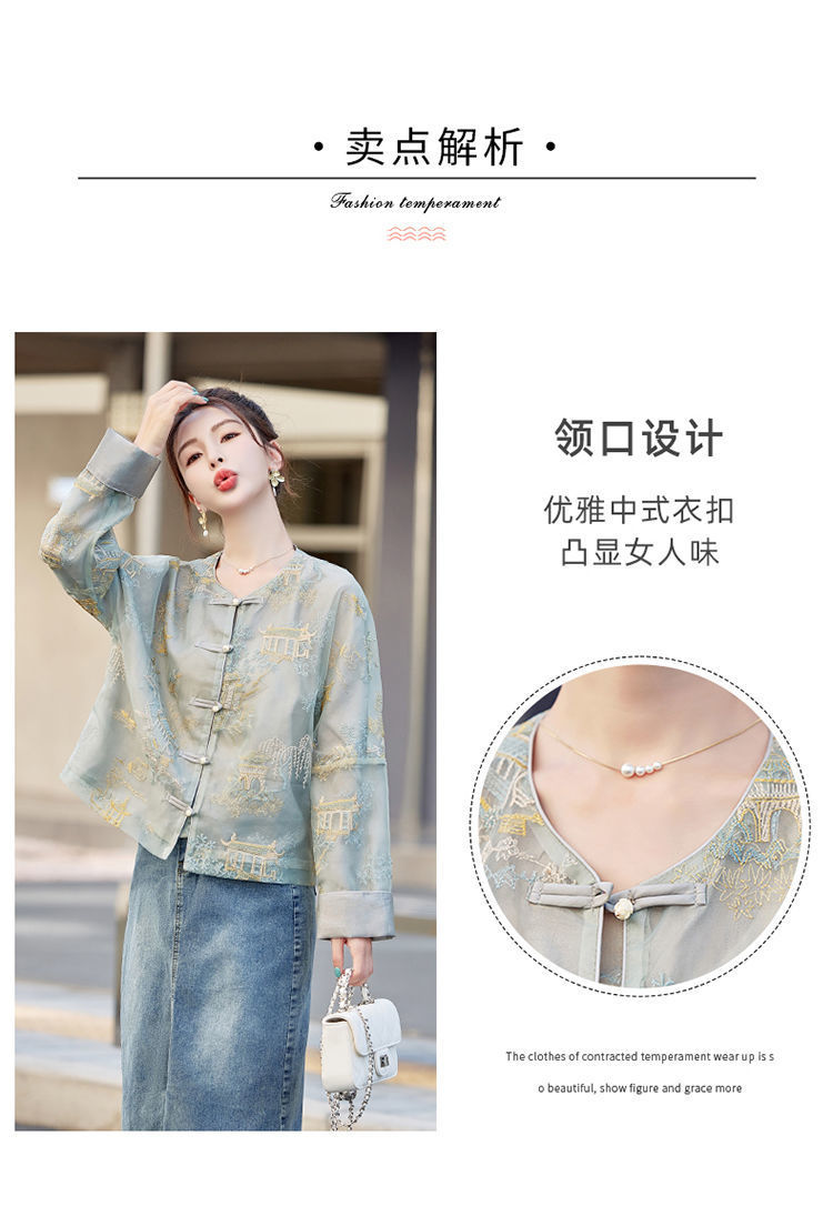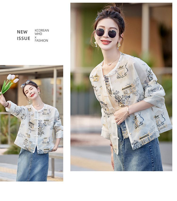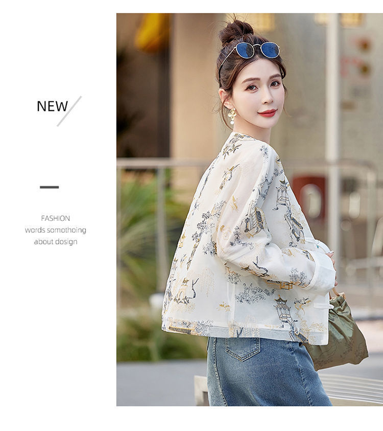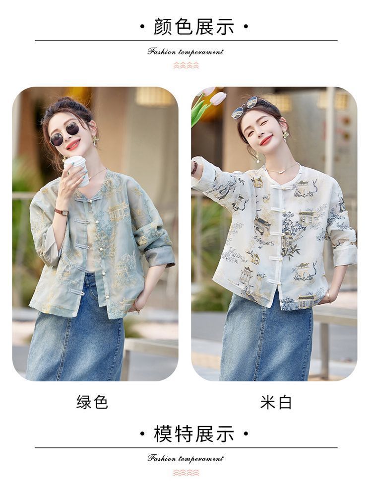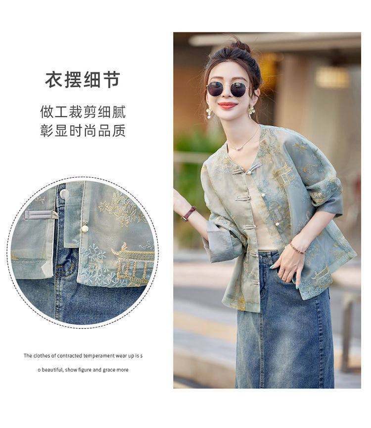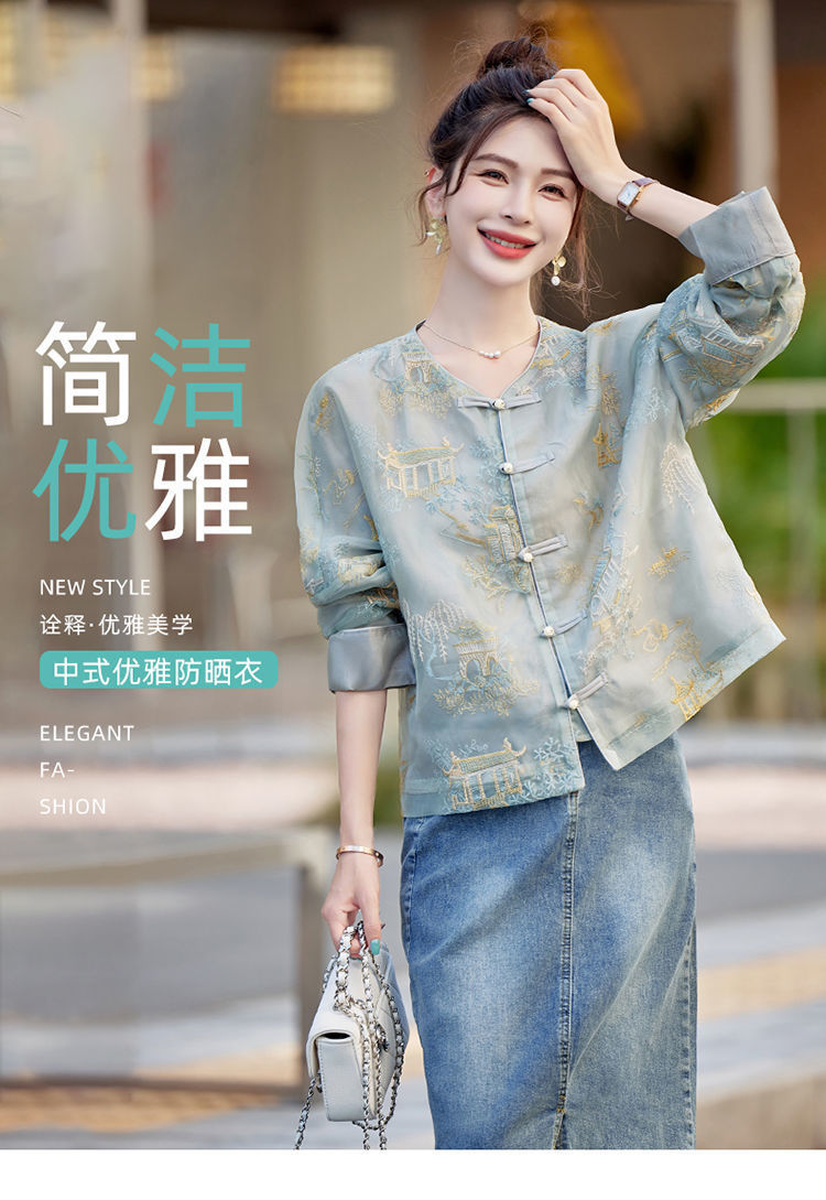 [점포 판매] 새 중국 수놓은 선스크린코트 여자 2025 년 여름 새 경량 라운드 넥 긴소매 캐주얼스토어 가기