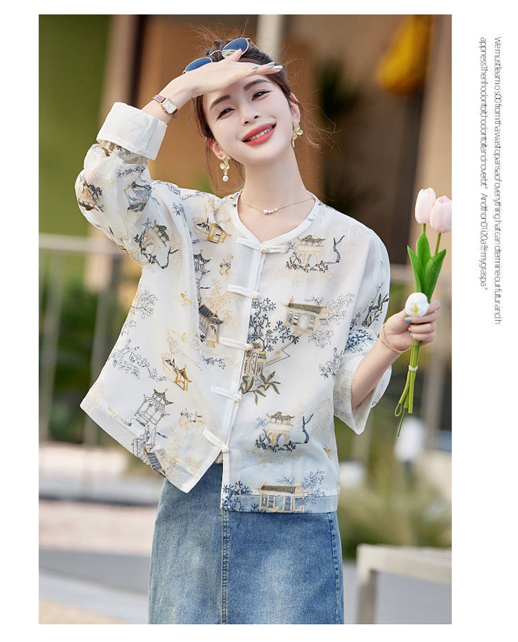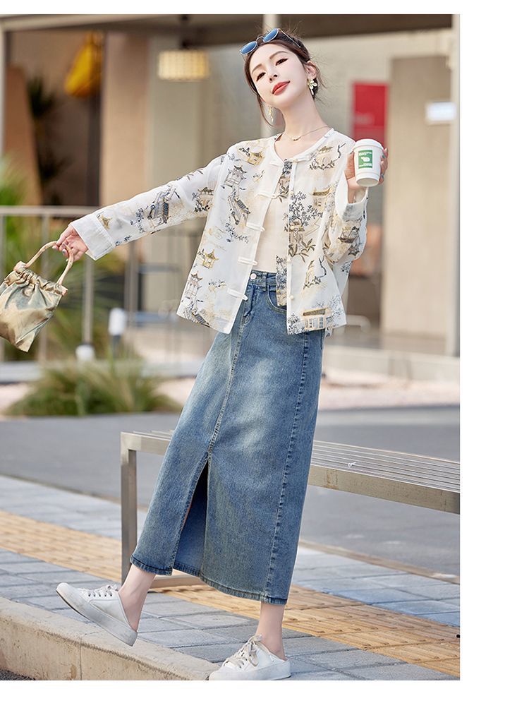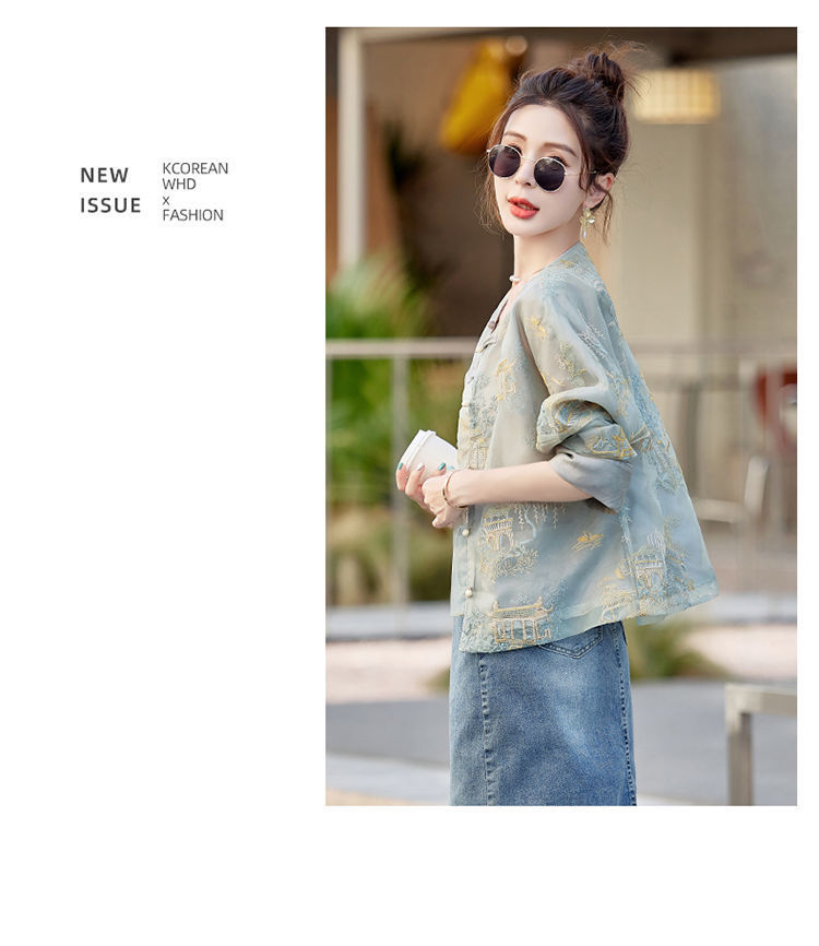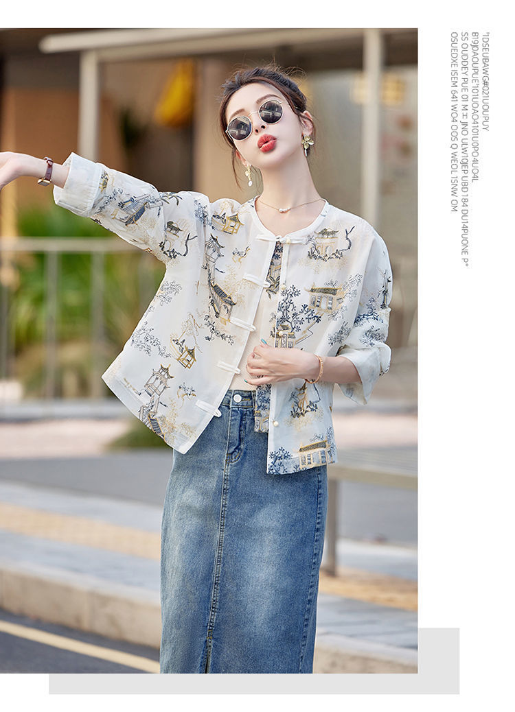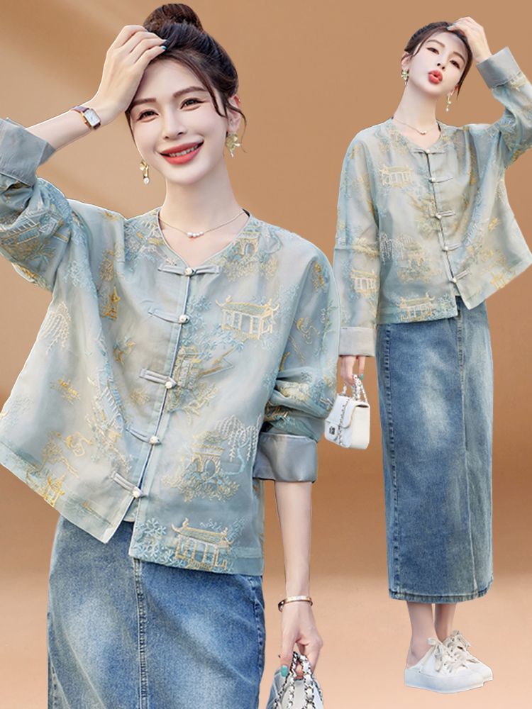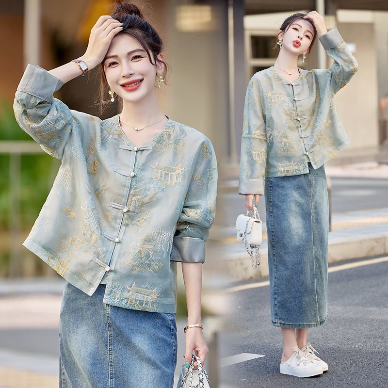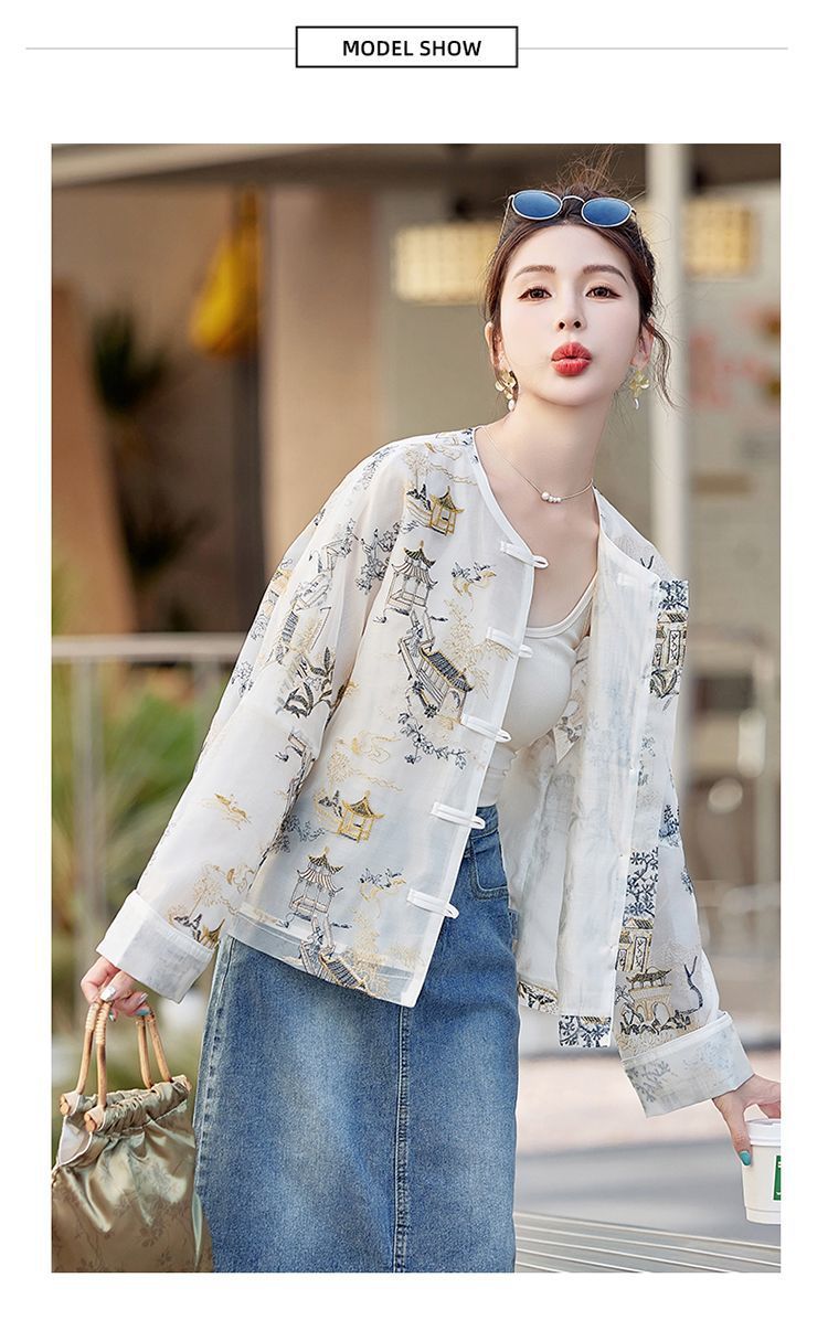 [점포 판매] 새 중국 수놓은 선스크린코트 여자 2025 년 여름 새 경량 라운드 넥 긴소매 캐주얼스토어 가기