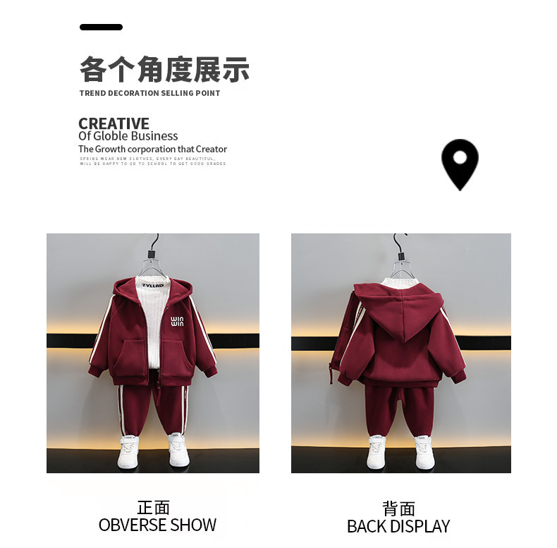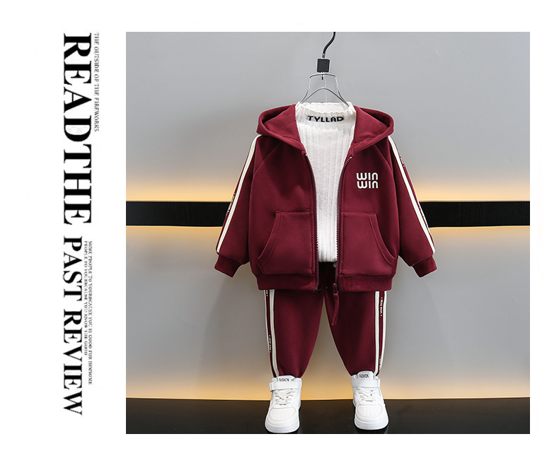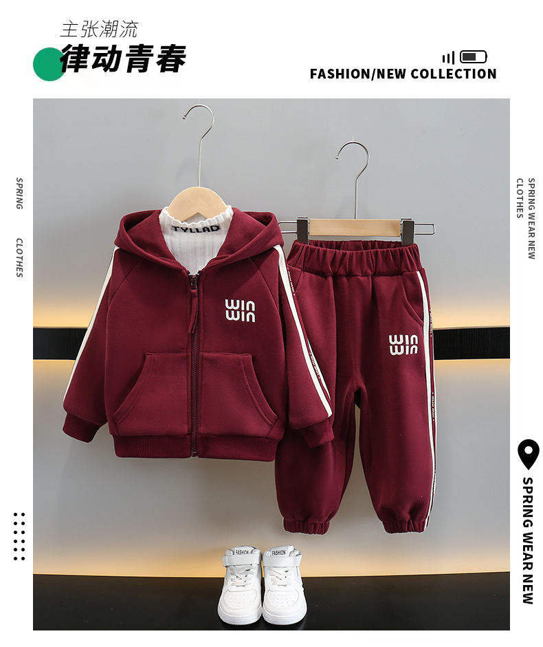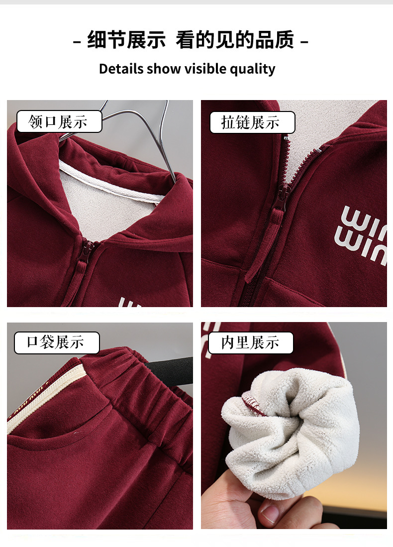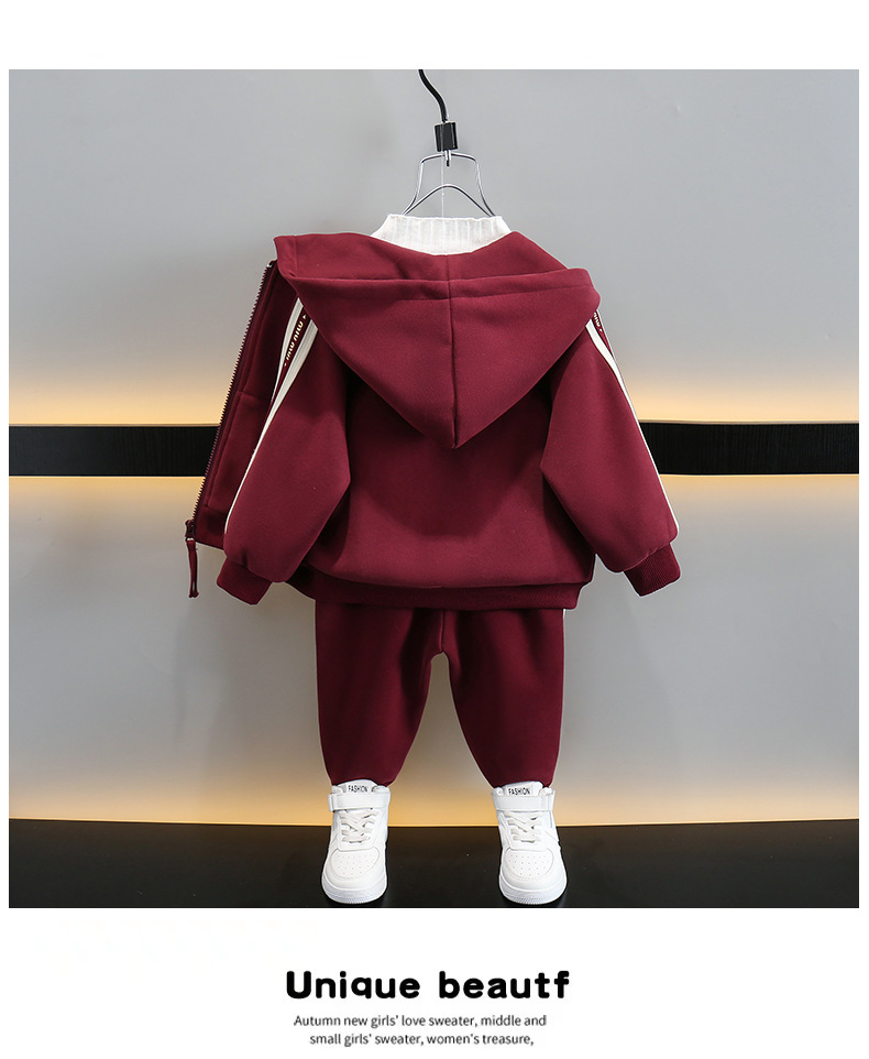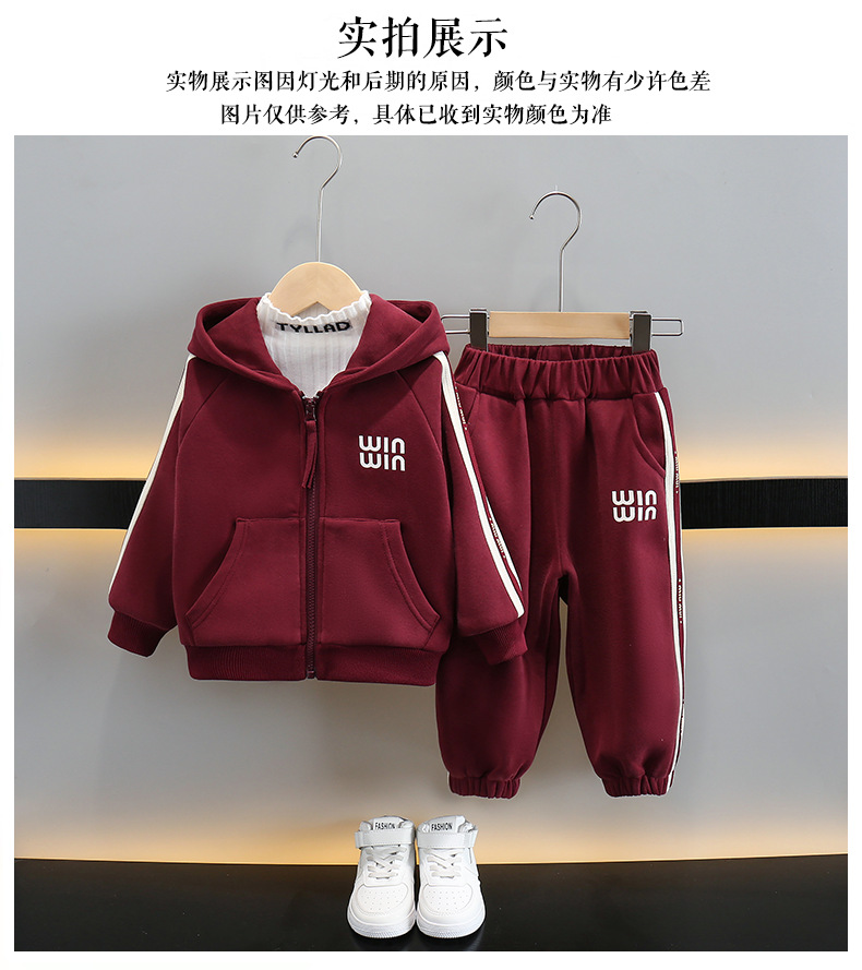 어린이 의류 소년 스포츠 세트 겨울 2025 새 소년 기모 두꺼운 옷 아기 겨울 투피스 세트