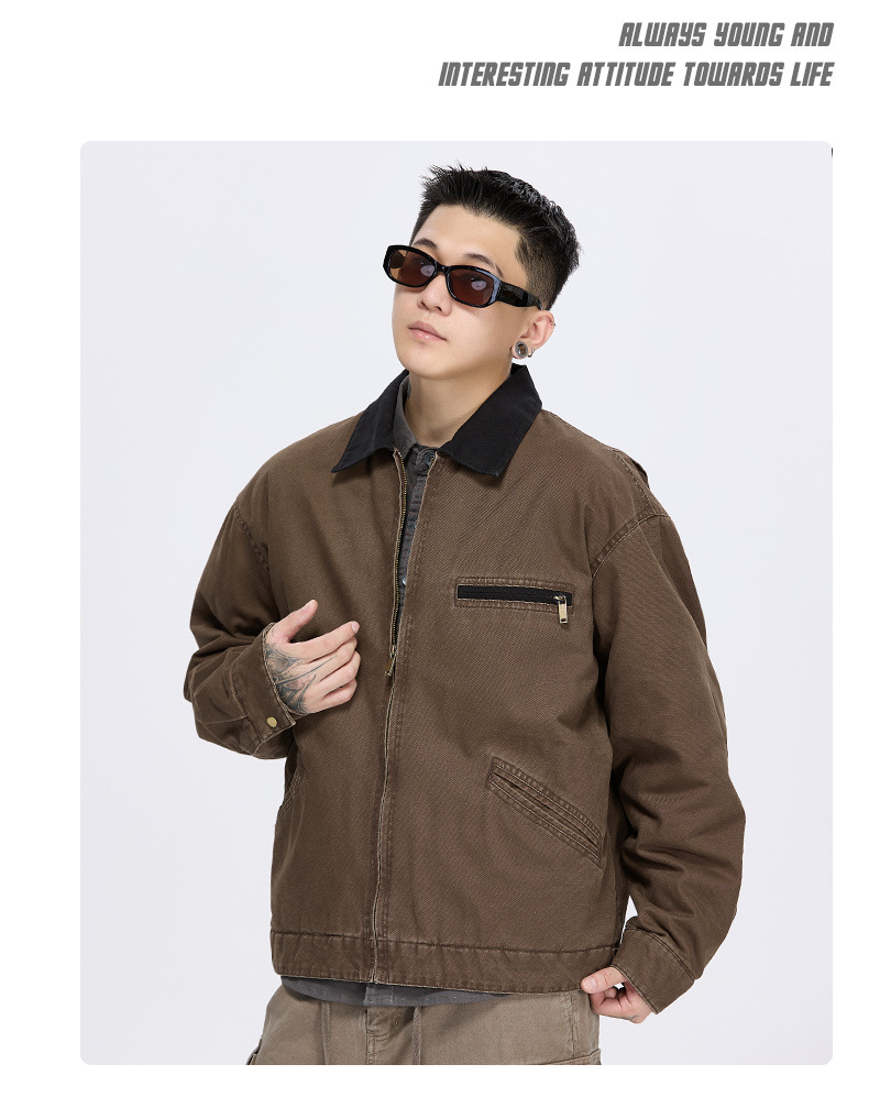 남성용 봄과 가을 미국 빈티지 디트로이트 재킷 카하트 작업복 봄과 가을 남성용 캔버스 랩 세탁 재킷스토어 가기