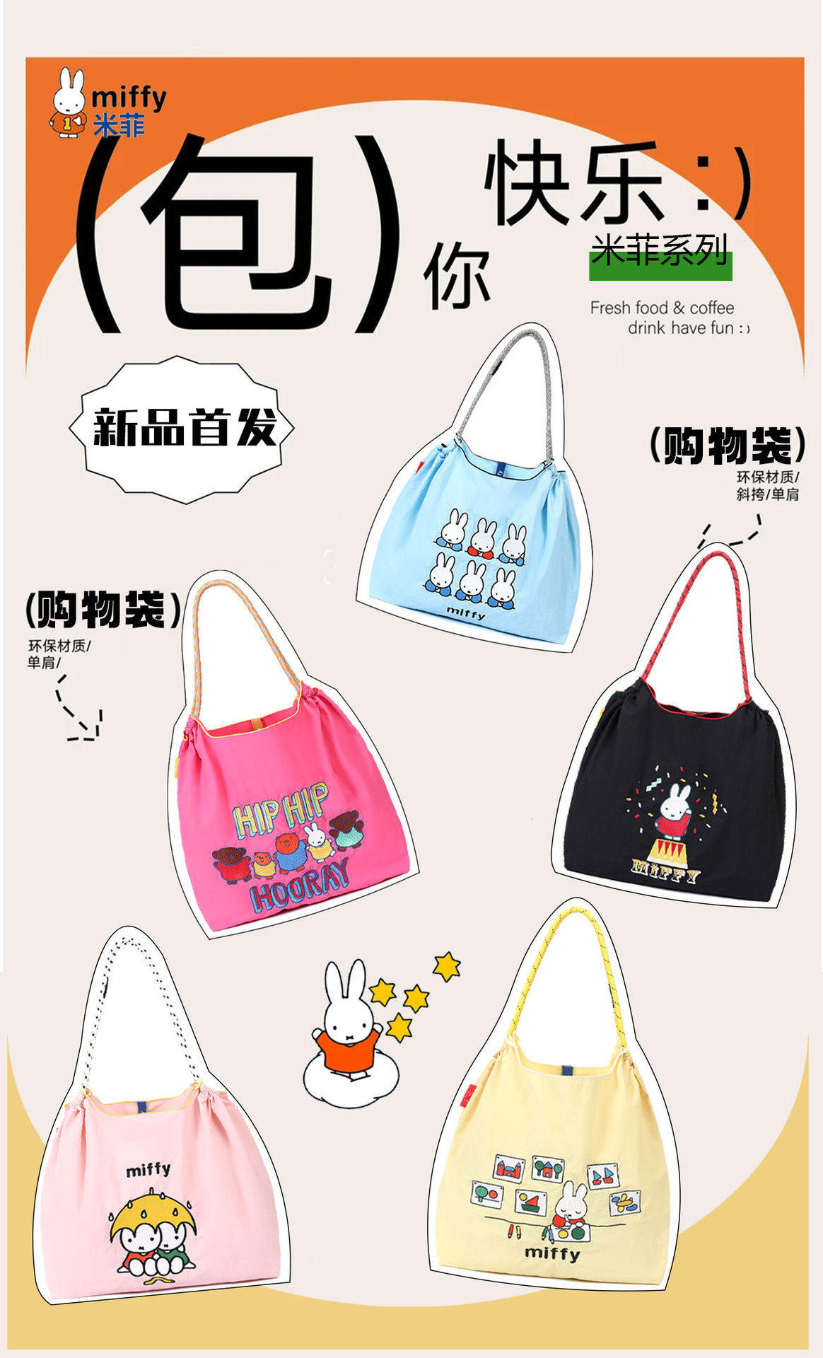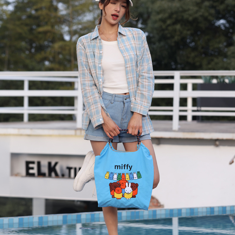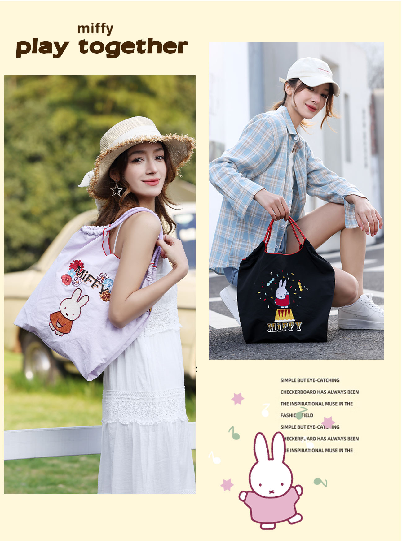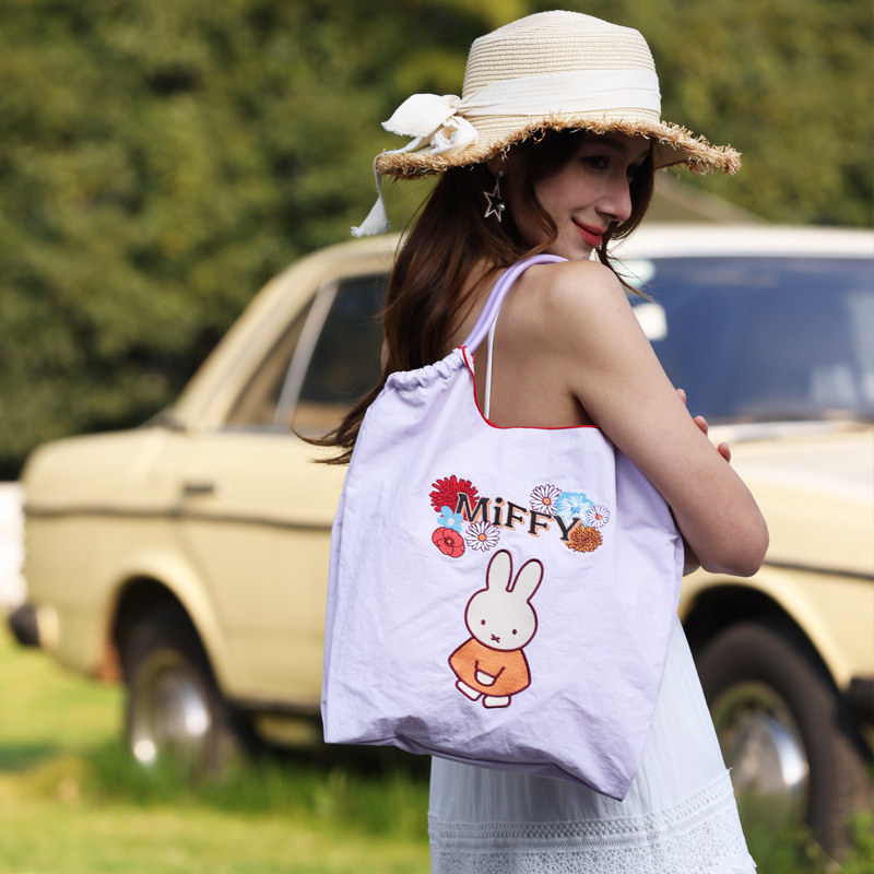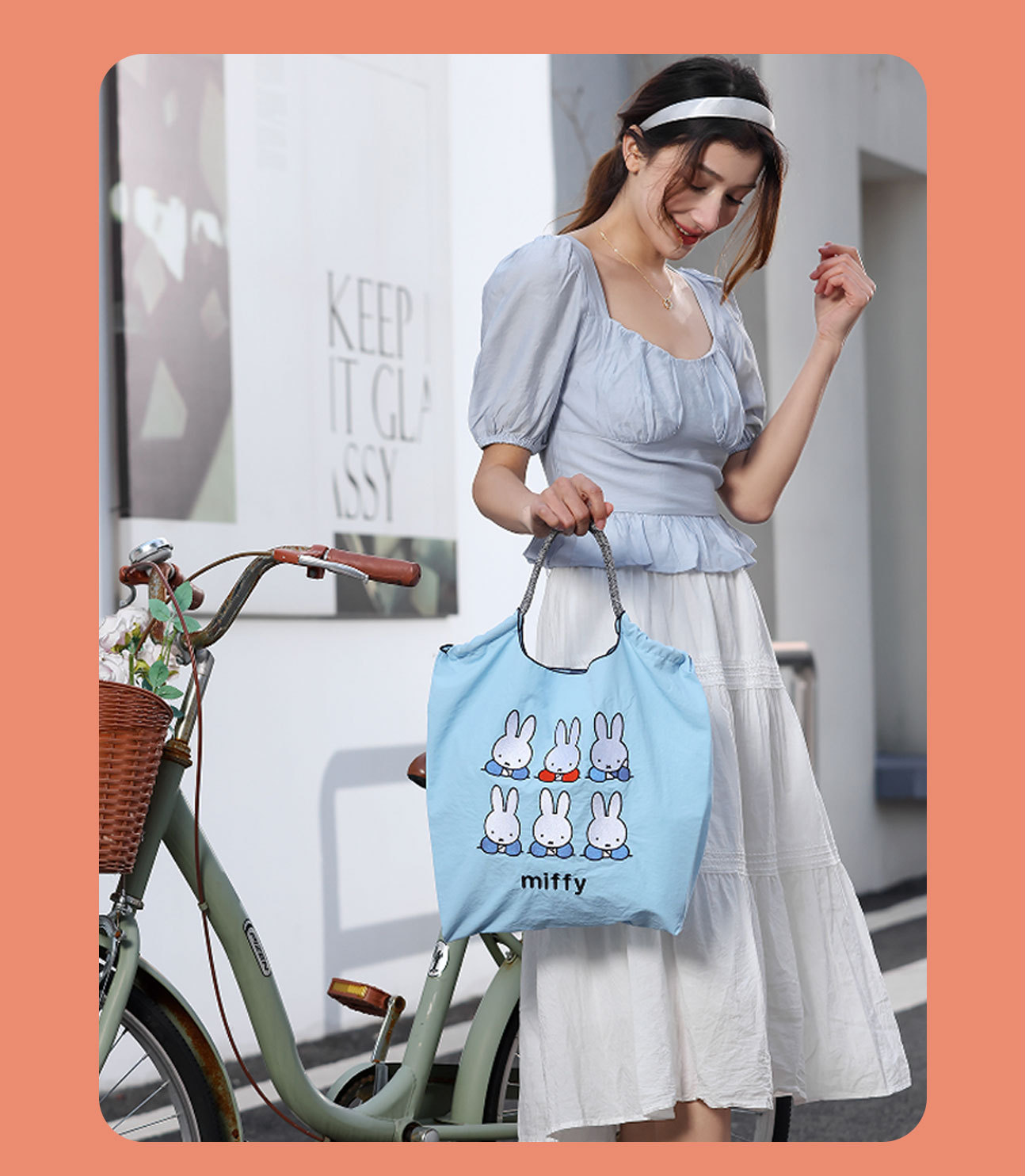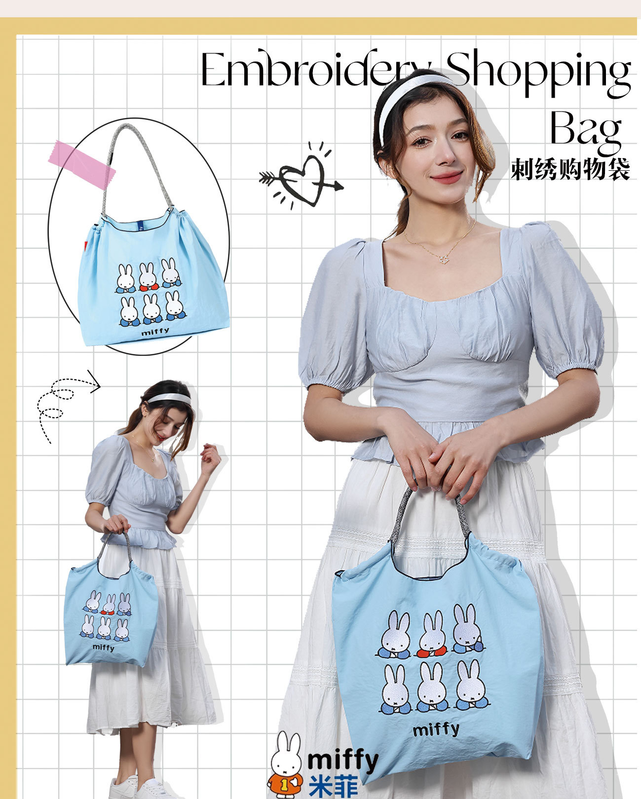 미피 토끼 가방 대용량 토트 백 여성용 가방 어깨 가방 휴대용 사첼 자수 미피 나일론 가방 여성용스토어 가기
