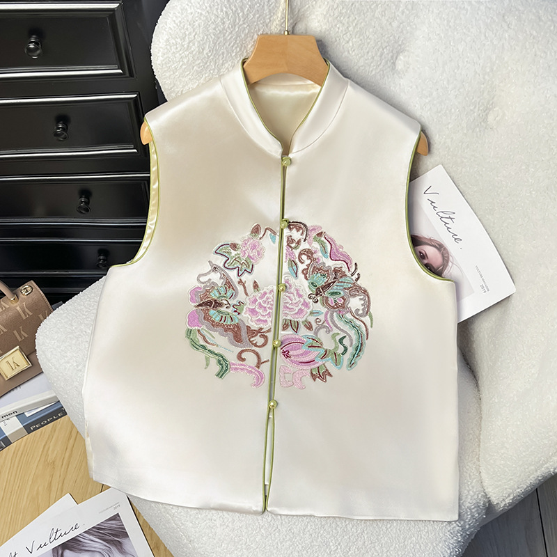 민족 스타일 조끼 2025 봄 자수 버클 조끼 느슨한 민소매 외부 착용 중국 스타일 조끼 칼라스토어 가기