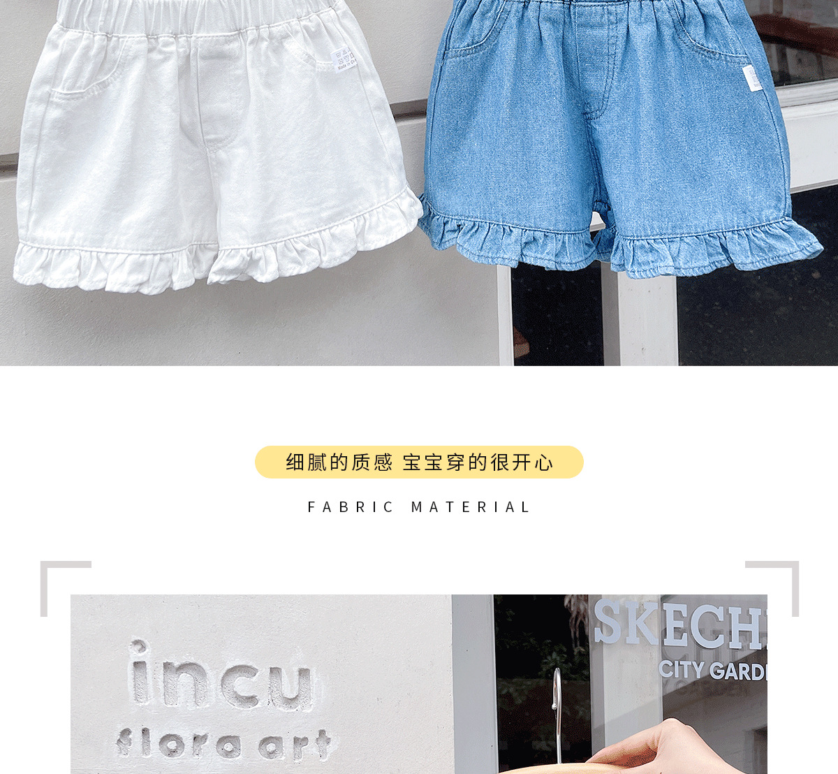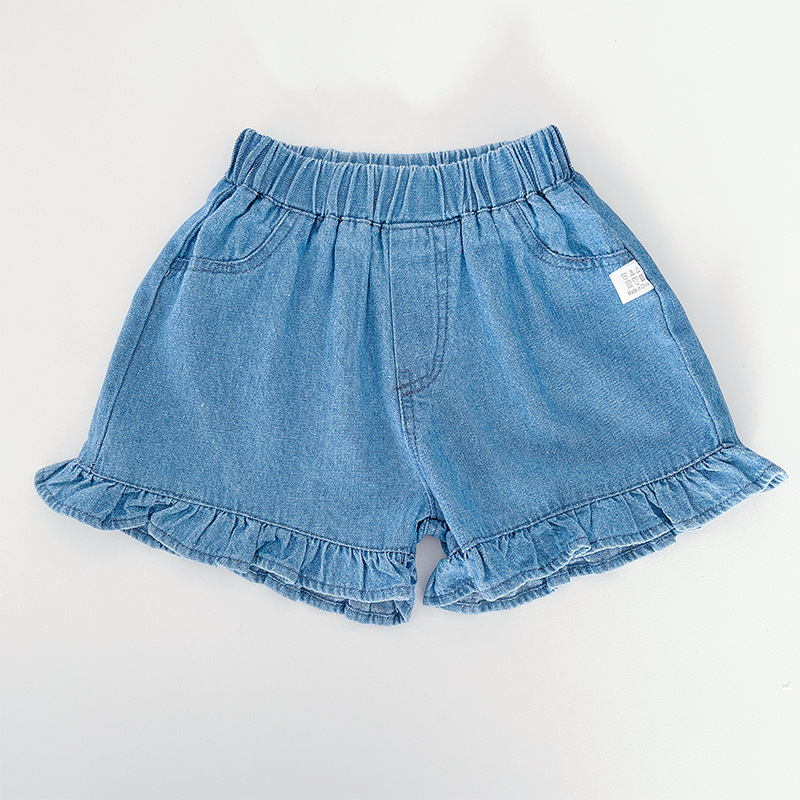 2024 여름 베이비 소프트 데님 반바지 소녀 베이비 솔리드 컬러 귀 데님 바지 세련된 겉옷 반바지스토어 가기