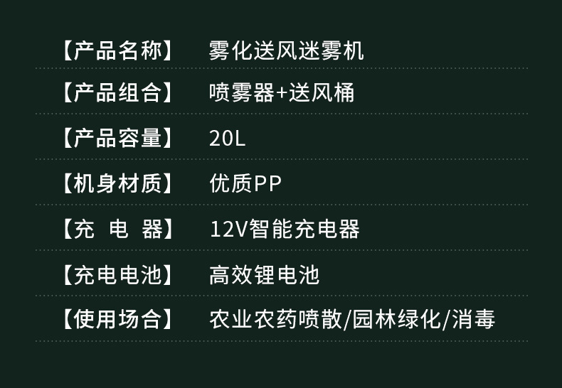 새로운 농업 고압 전기 분무기 살포 기계 안개 기계 살해 공기 덕트 전염병 예방 및 소독