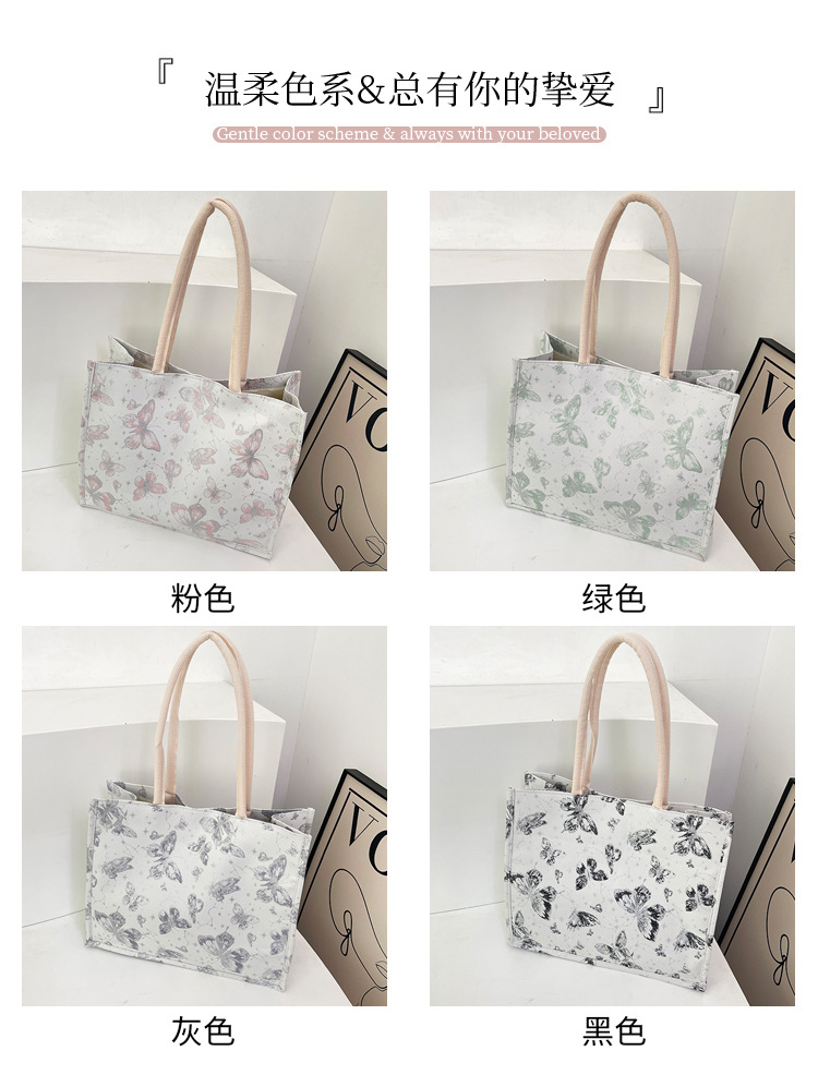 2025 여름 새로운 예술적 문자 신선한 나비 인쇄 대용량 캐주얼 어깨 언더암 토트 백스토어 가기