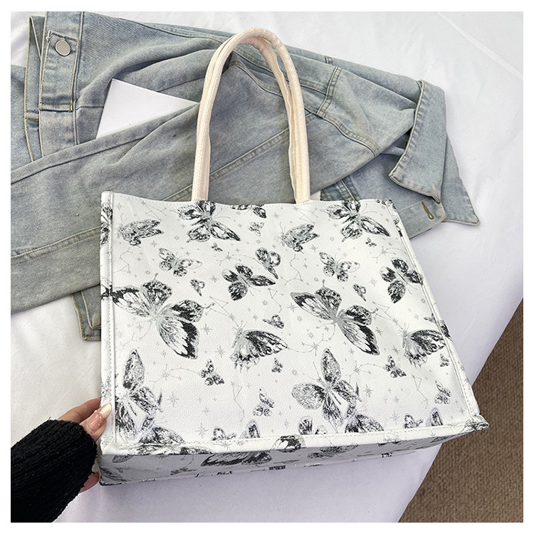 2025 여름 새로운 예술적 문자 신선한 나비 인쇄 대용량 캐주얼 어깨 언더암 토트 백