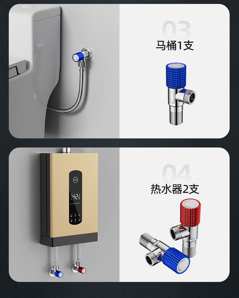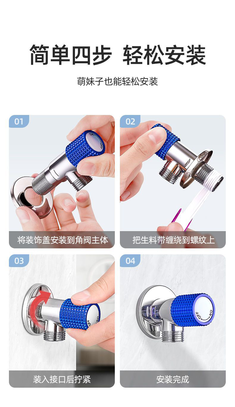 • 장식 커버가 있는 304 앵글 밸브/파란색 2개 및 빨간색 2개