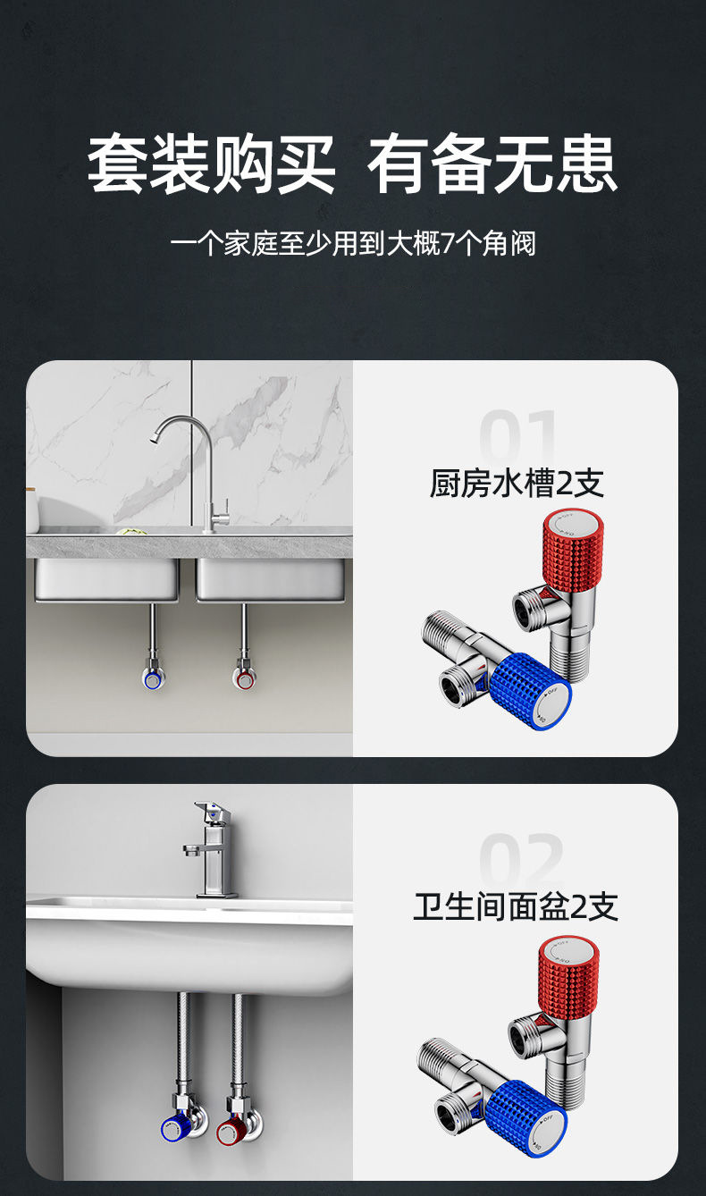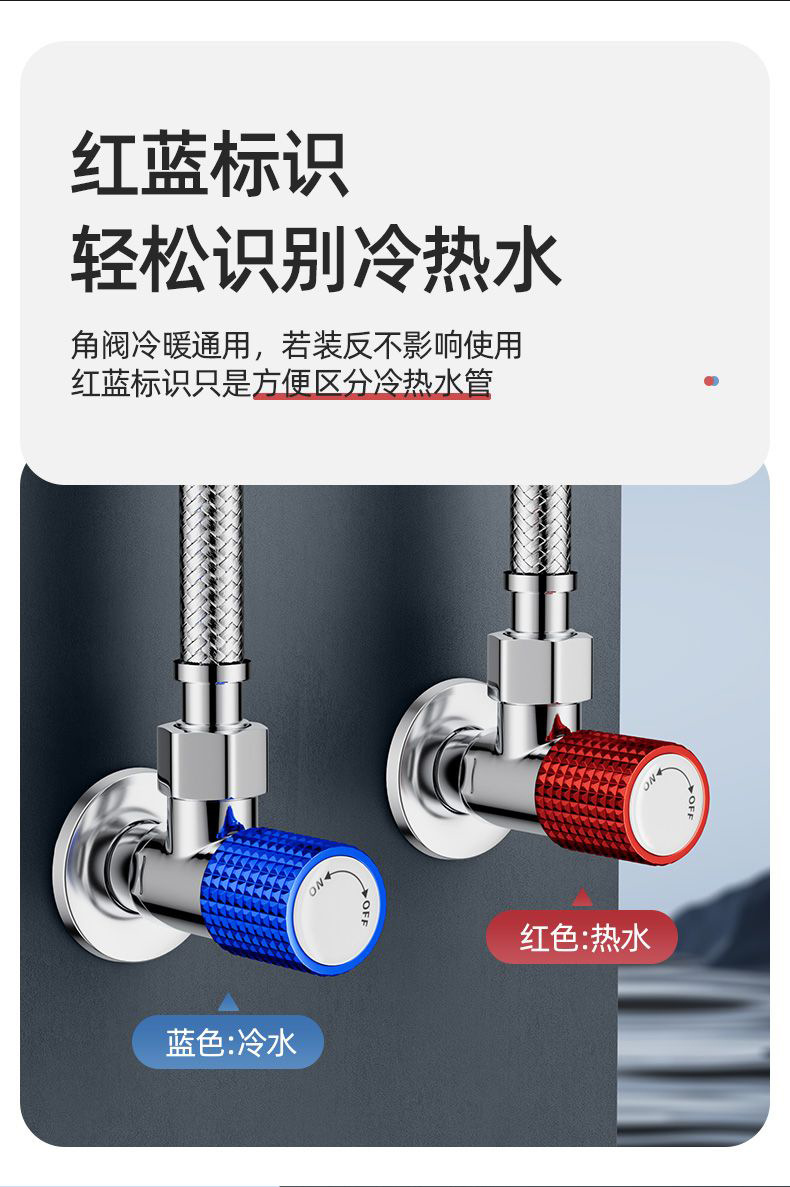 • 장식 커버가 있는 304 앵글 밸브/파란색 6개 및 빨간색 4개