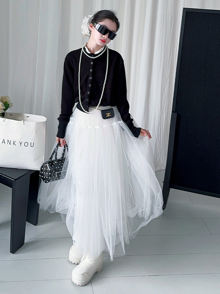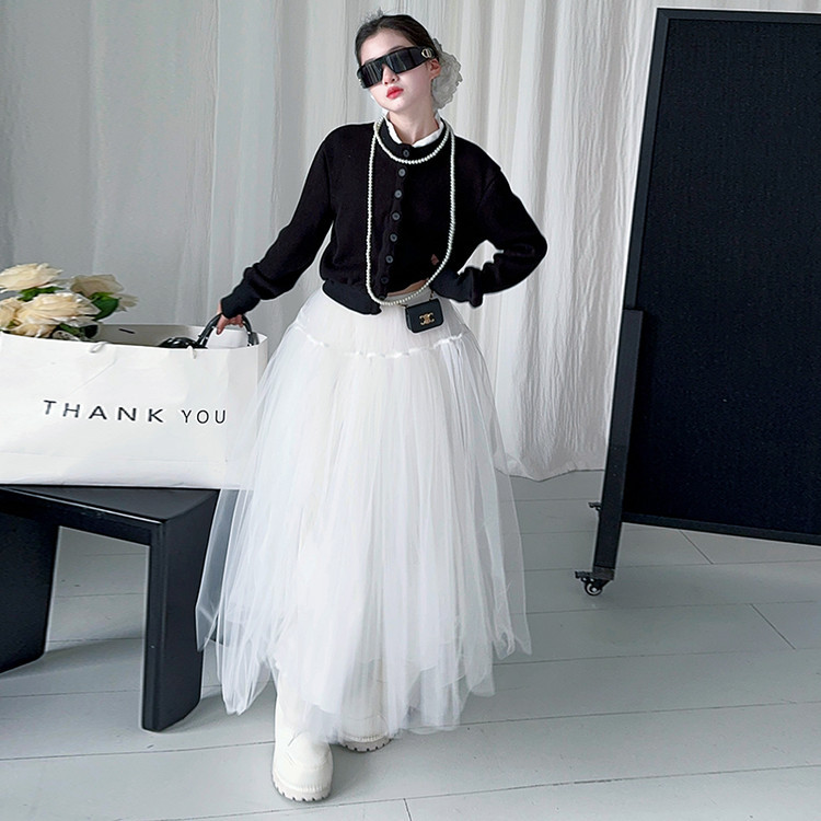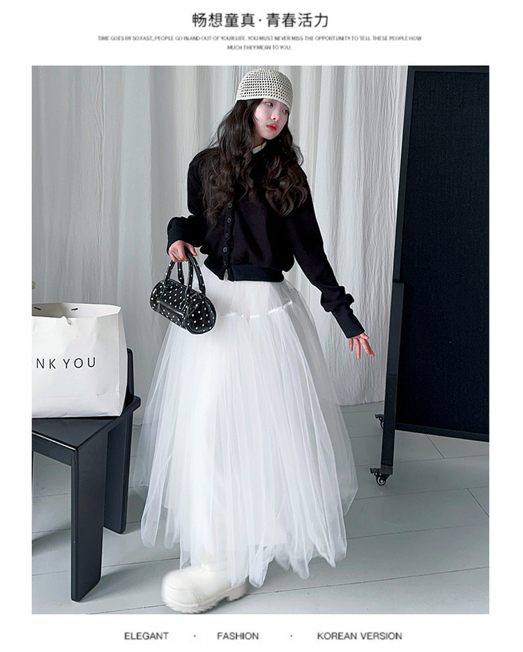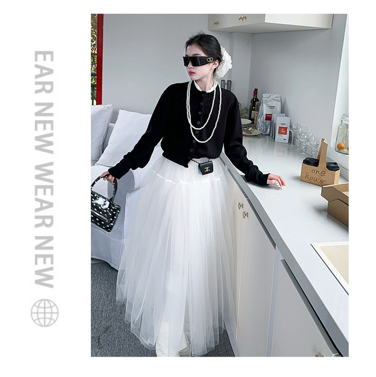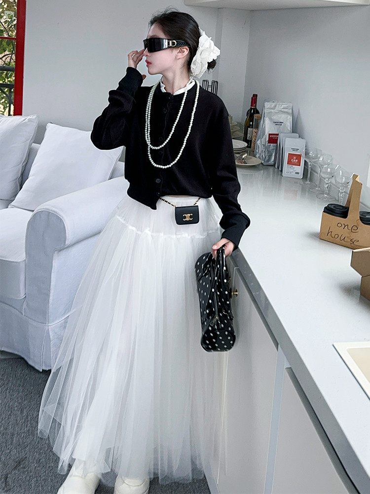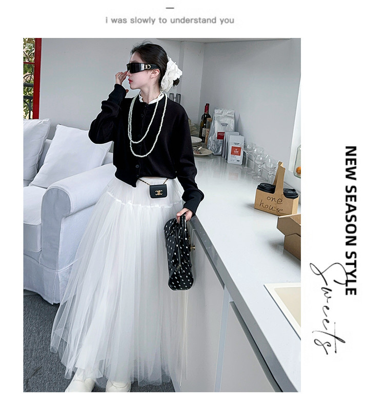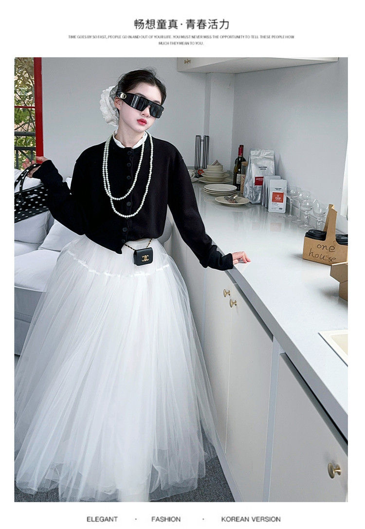 소녀 봄 카디건 코트 거즈 스커트 세트 스커트 2025 세트 새로운 큰 어린이 봄과 가을 소녀 투피스 세트