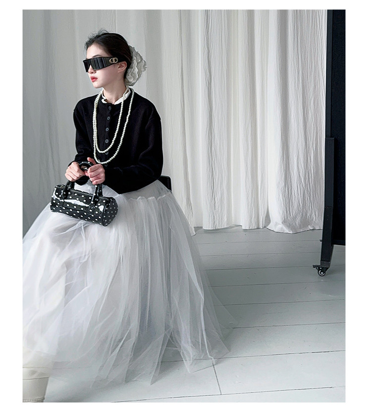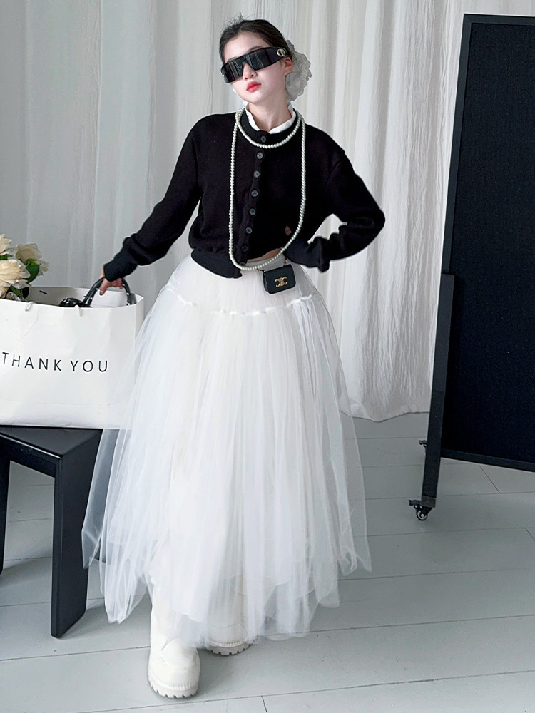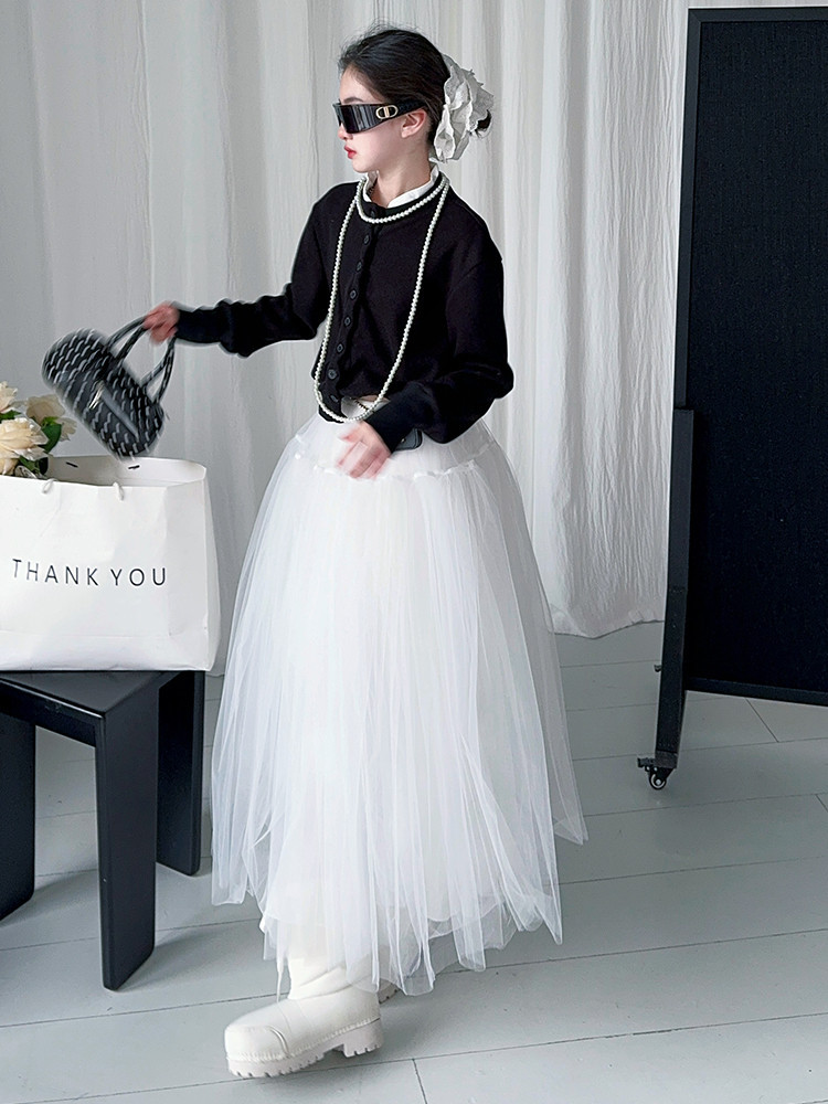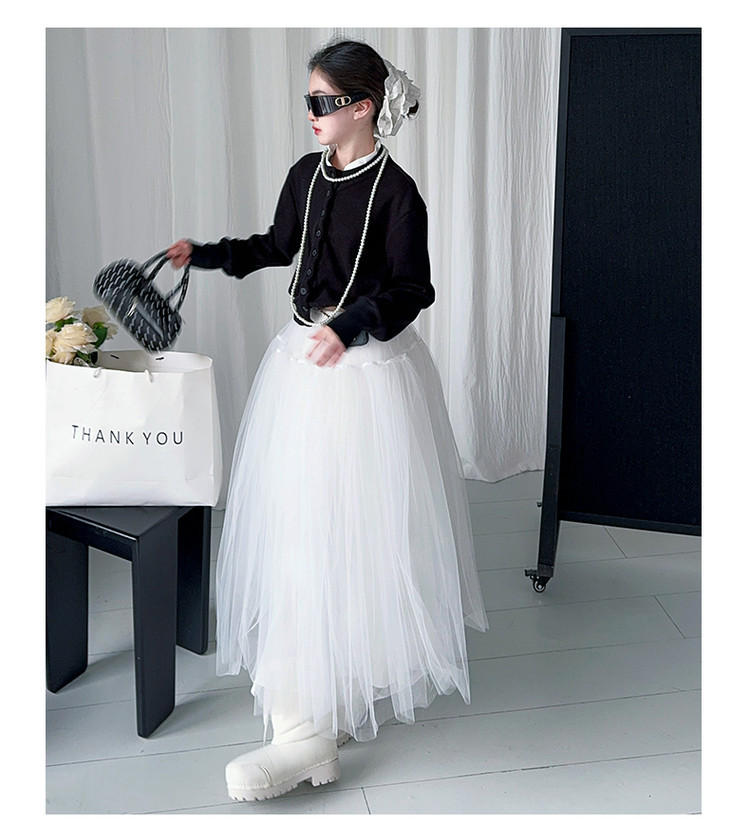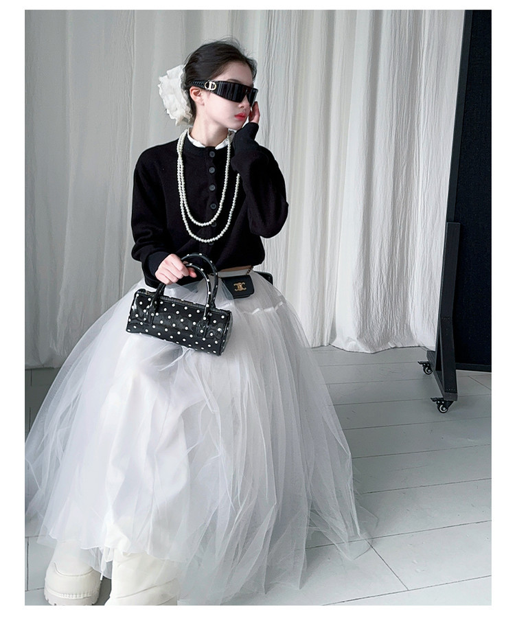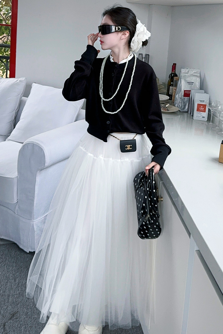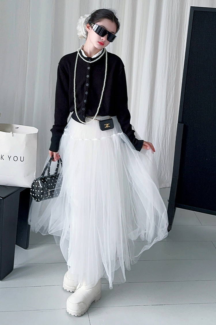 소녀 봄 카디건 코트 거즈 스커트 세트 스커트 2025 세트 새로운 큰 어린이 봄과 가을 소녀 투피스 세트