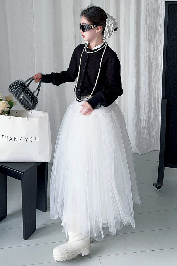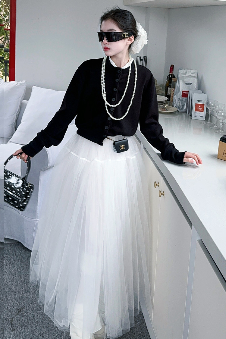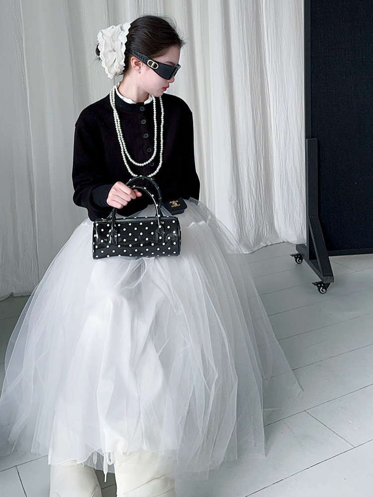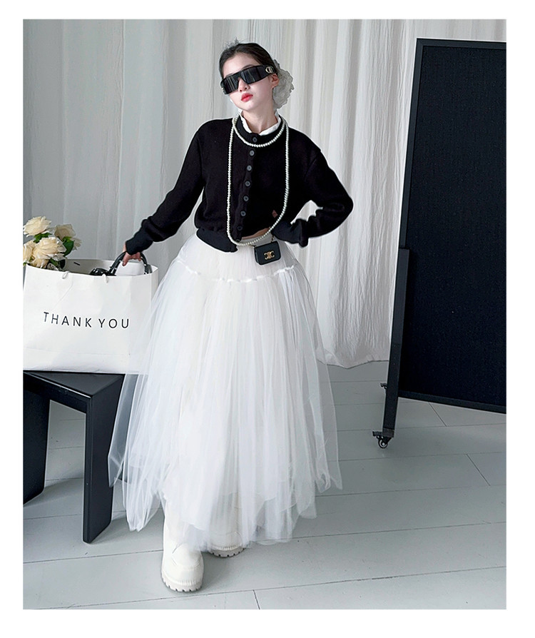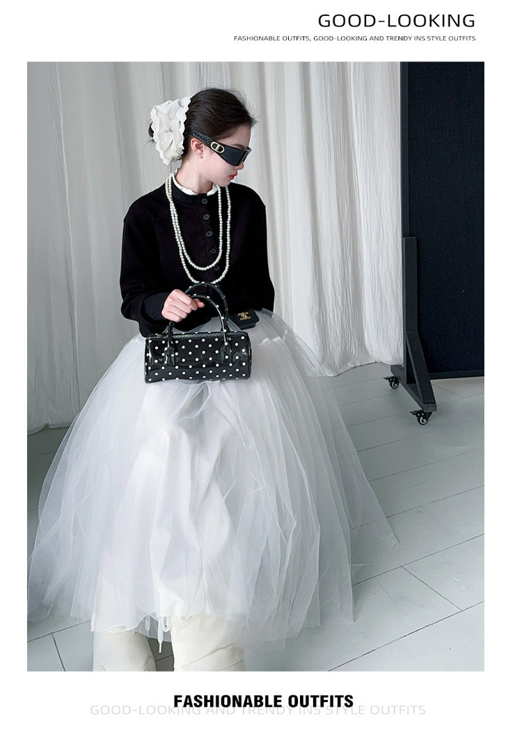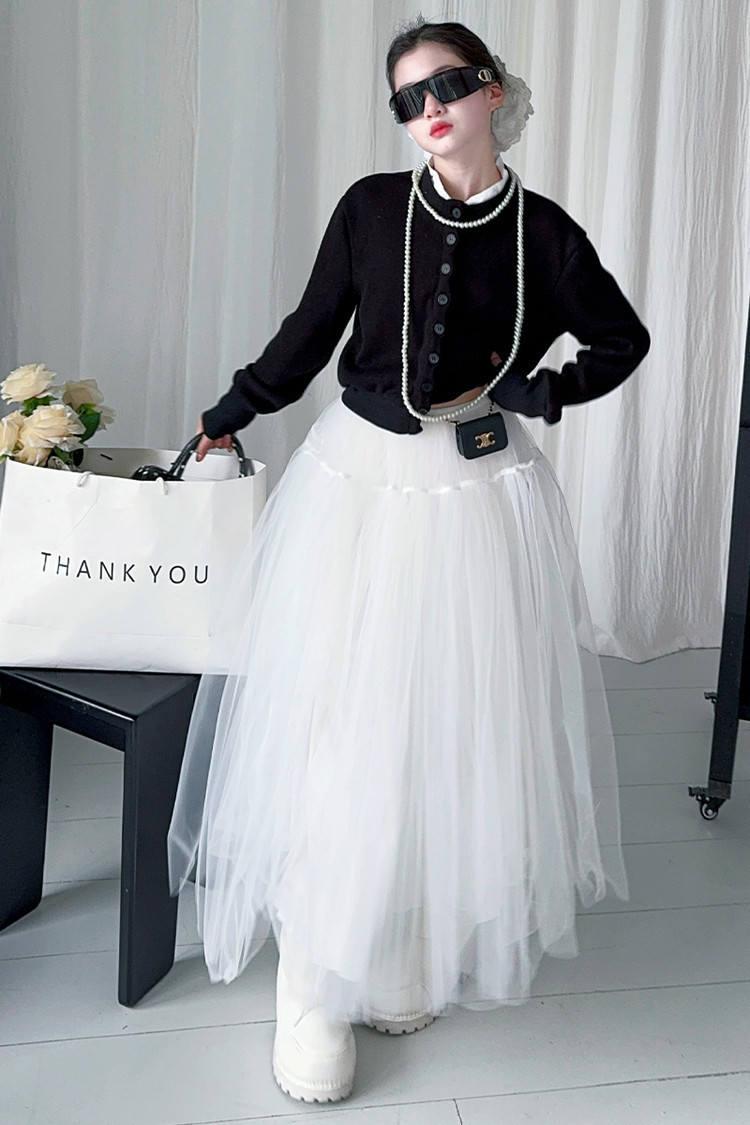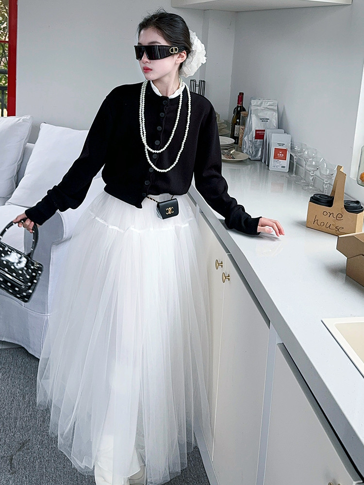 소녀 봄 카디건 코트 거즈 스커트 세트 스커트 2025 세트 새로운 큰 어린이 봄과 가을 소녀 투피스 세트