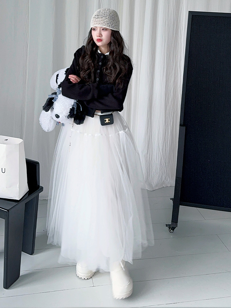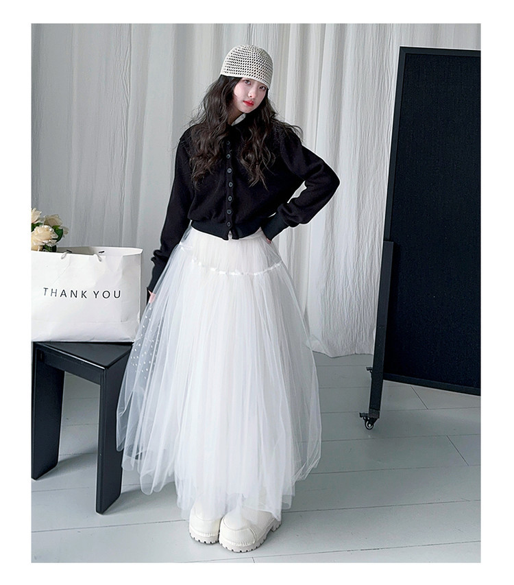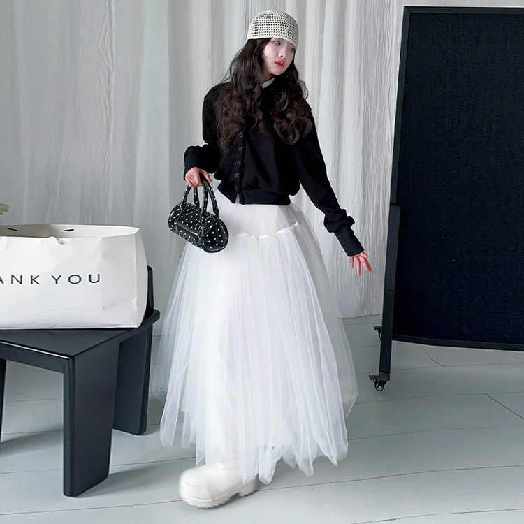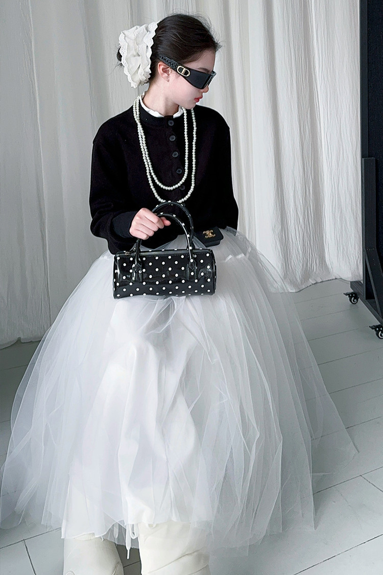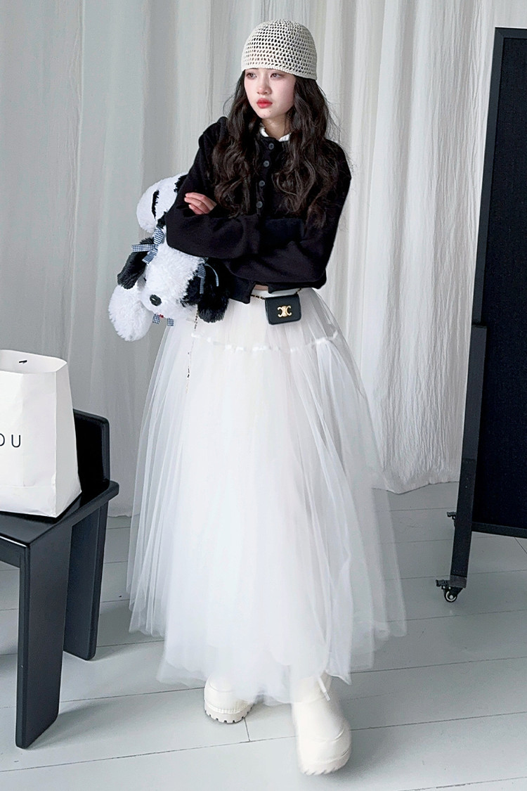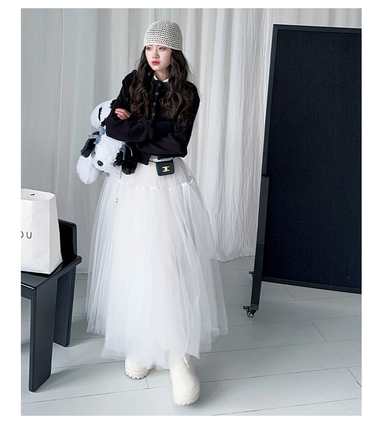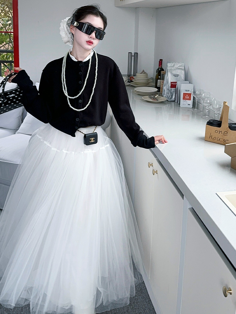 소녀 봄 카디건 코트 거즈 스커트 세트 스커트 2025 세트 새로운 큰 어린이 봄과 가을 소녀 투피스 세트