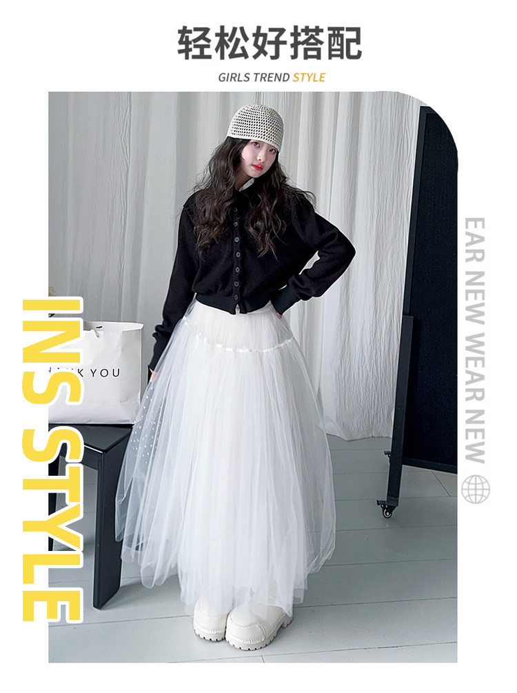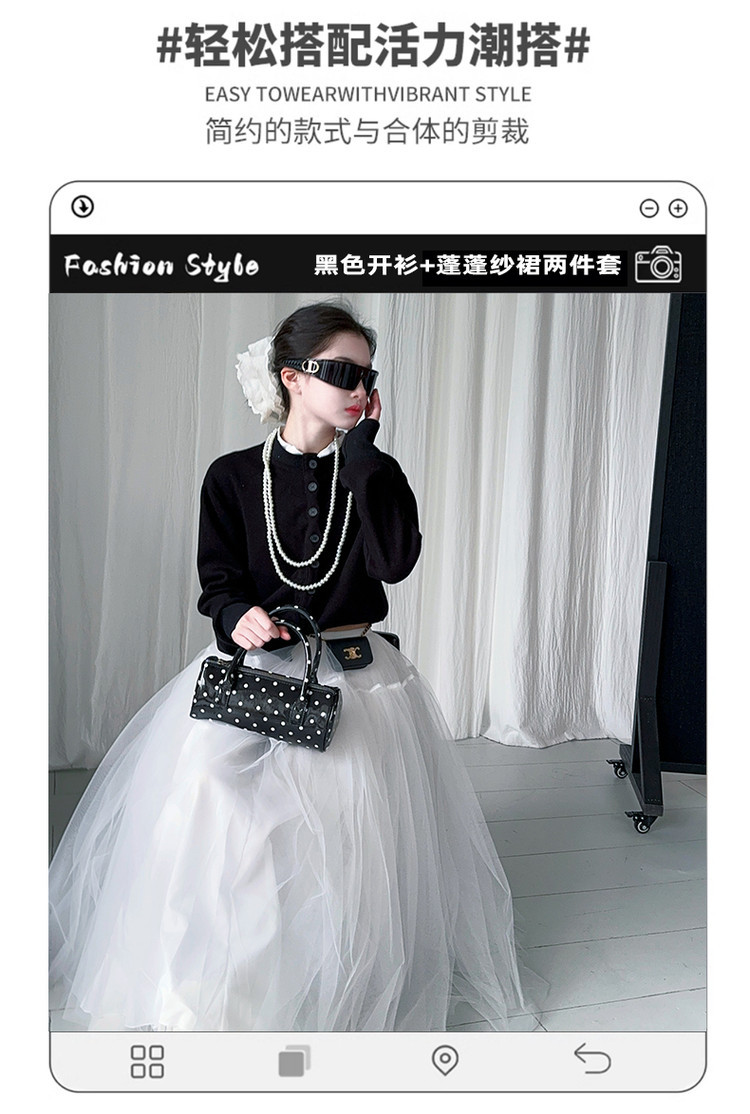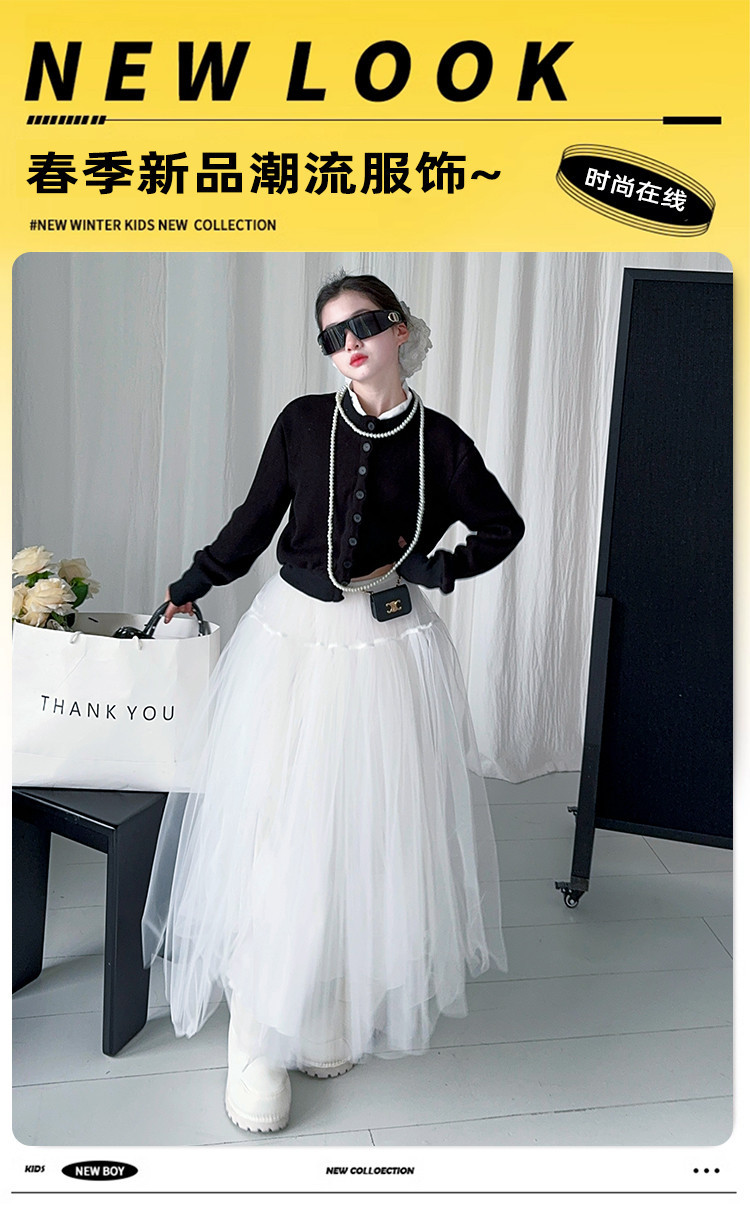 소녀 봄 카디건 코트 거즈 스커트 세트 스커트 2025 세트 새로운 큰 어린이 봄과 가을 소녀 투피스 세트스토어 가기