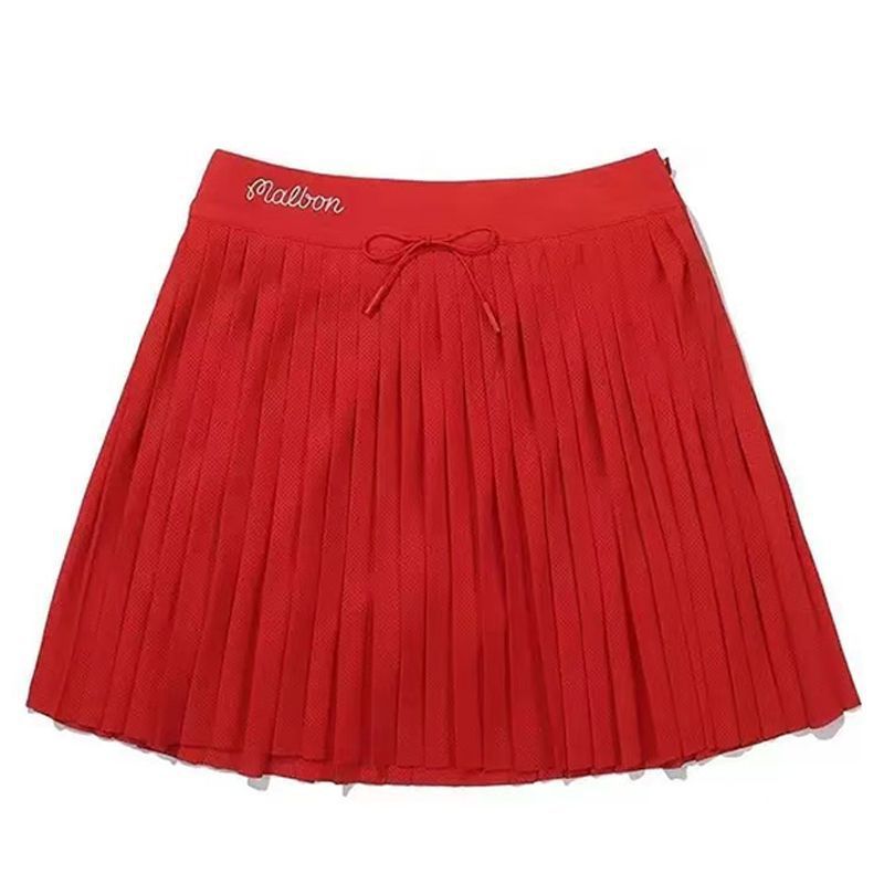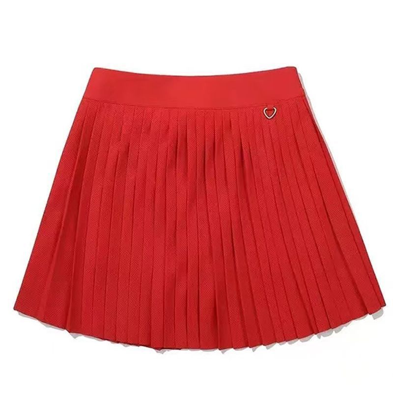 한국 골프 여자 볼 스커트 골프 로고 경량 통기성 퀵 드라이 스포츠 플리츠 레드 스커트