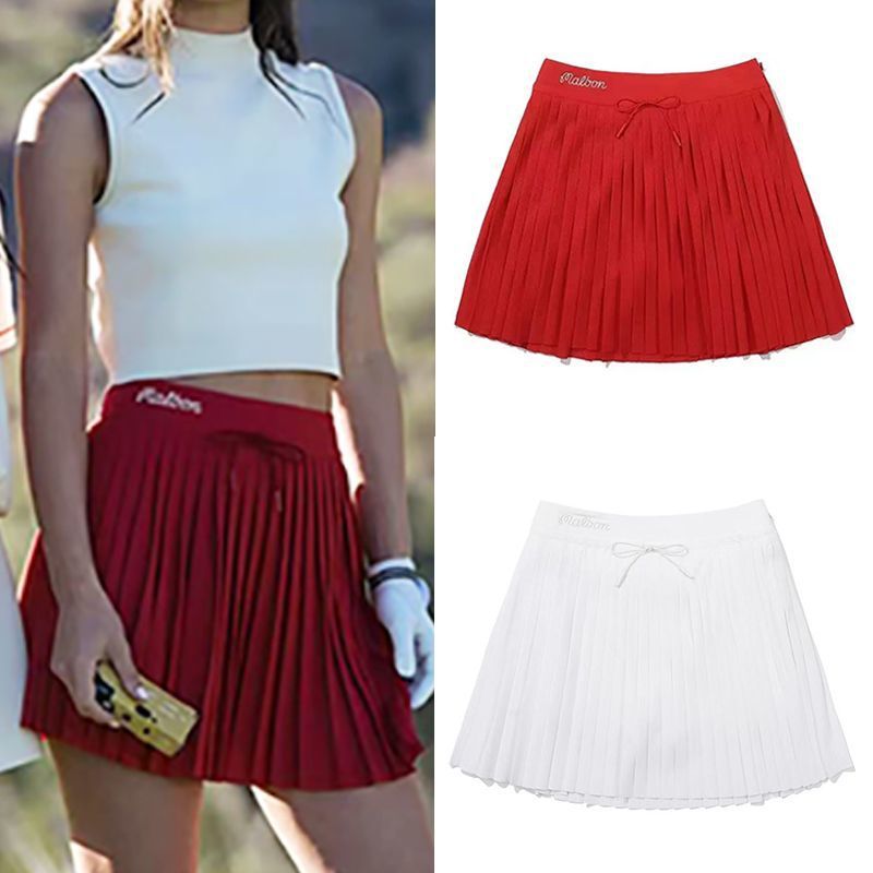한국 골프 여자 볼 스커트 골프 로고 경량 통기성 퀵 드라이 스포츠 플리츠 레드 스커트스토어 가기