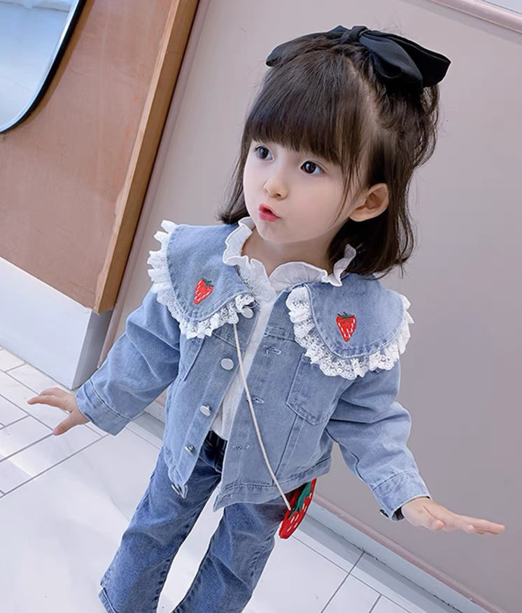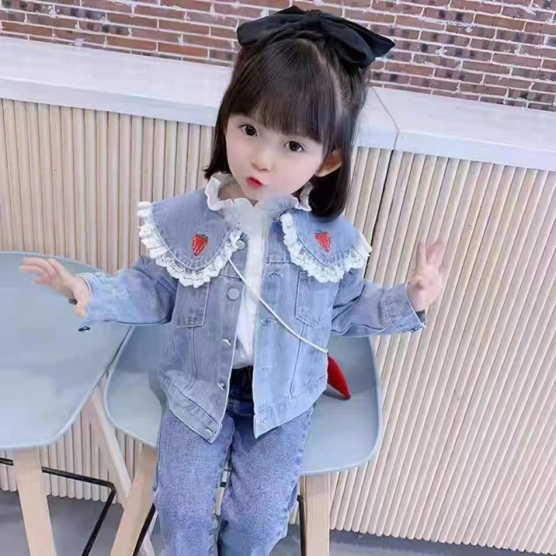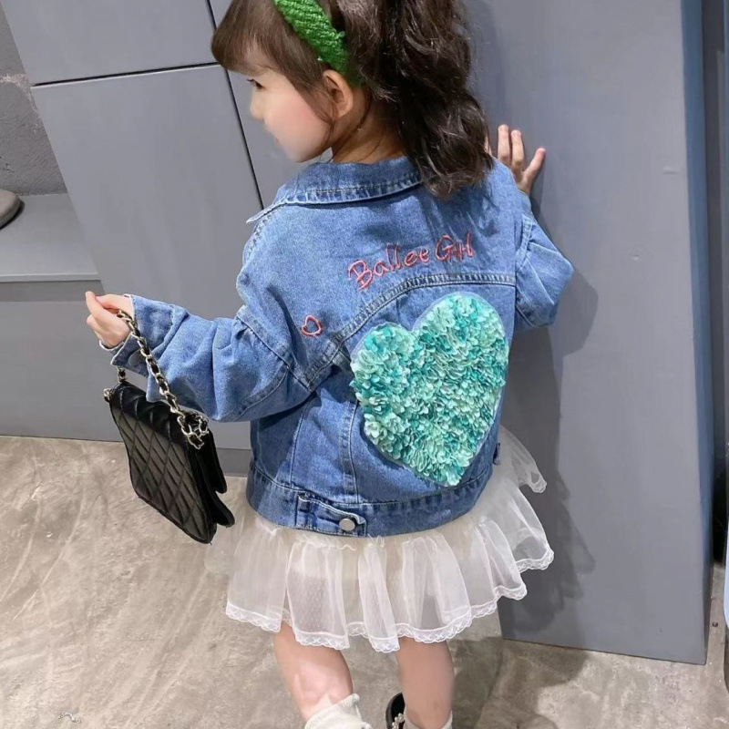 2025 소녀 새로운 봄과 가을 어린이 데님 코트 유행 공주 스타일 유행 유행 유행 브랜드 인터넷 축하 캐주얼 자켓스토어 가기