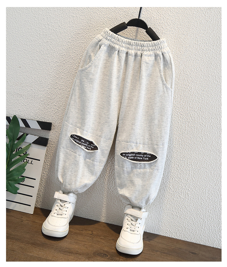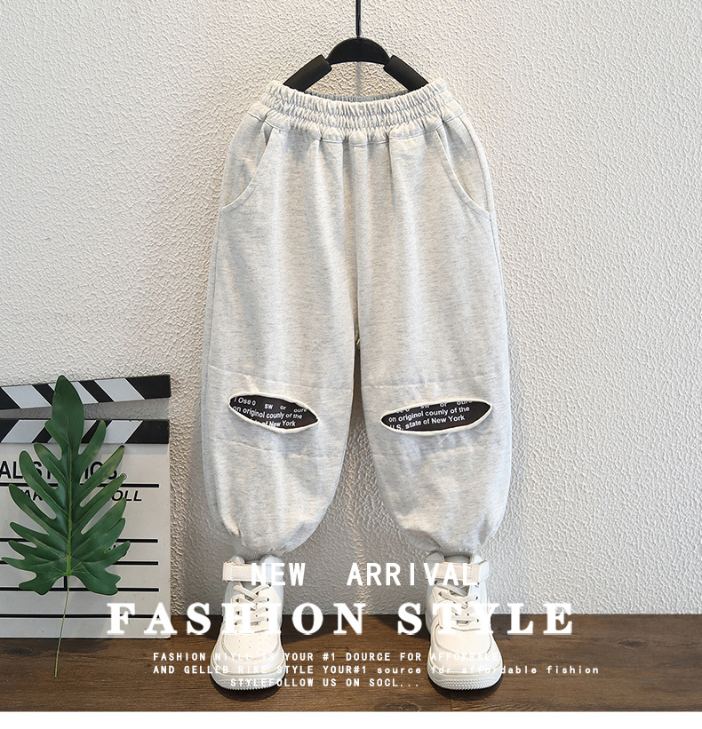 어린이 가짜 구멍 캐주얼 느슨한 운동복 2025 봄 새 소년과 소녀 한국 스타일 회색 스포츠 바지 유행스토어 가기