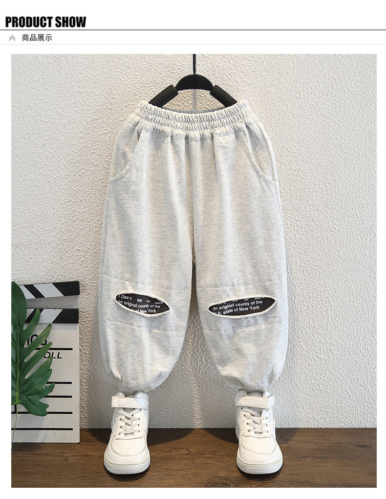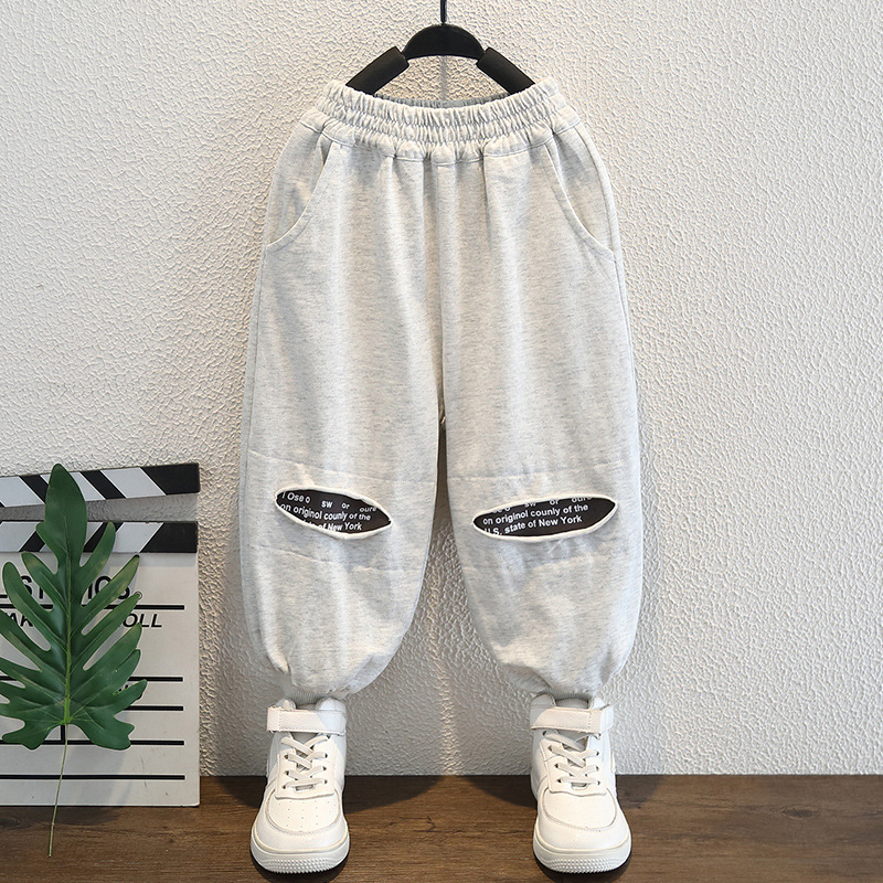어린이 가짜 구멍 캐주얼 느슨한 운동복 2025 봄 새 소년과 소녀 한국 스타일 회색 스포츠 바지 유행
