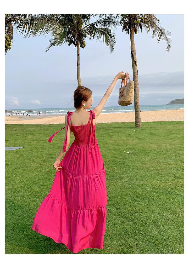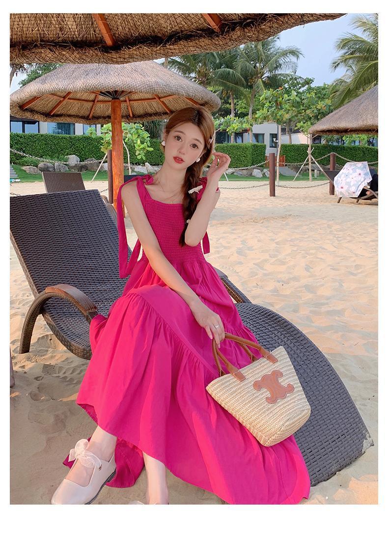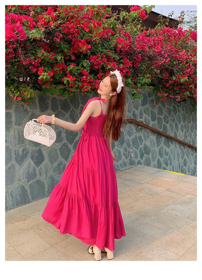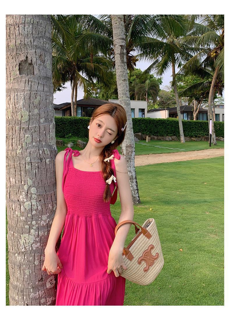 플러스 사이즈 한국 스타일 휴일 스타일 달콤한 슬링 원피스 여성 여름 새로운 스타일 스트랩리스 작은 신선한 스타일 높은 허리 긴 스커트