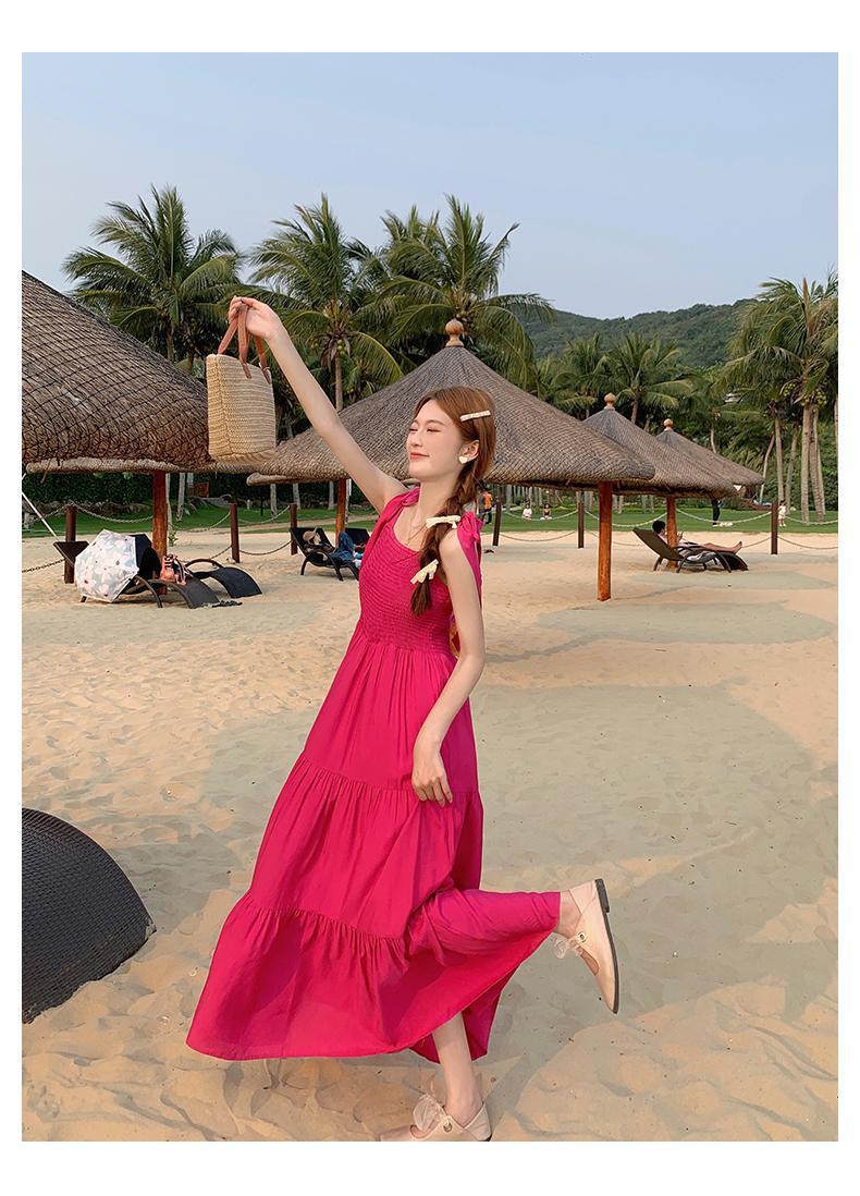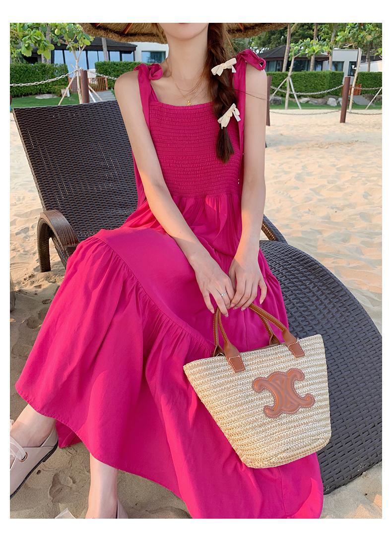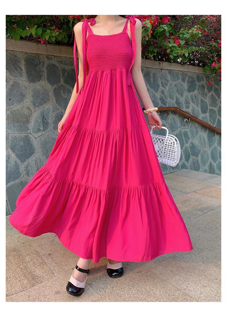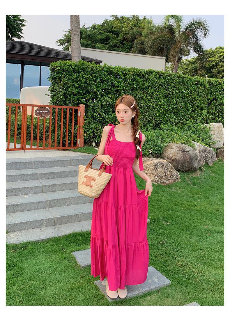 플러스 사이즈 한국 스타일 휴일 스타일 달콤한 슬링 원피스 여성 여름 새로운 스타일 스트랩리스 작은 신선한 스타일 높은 허리 긴 스커트