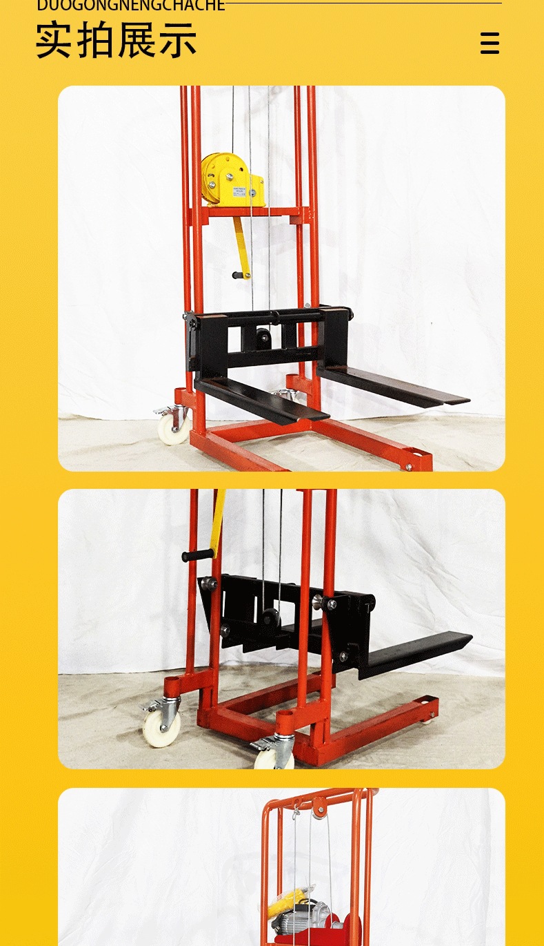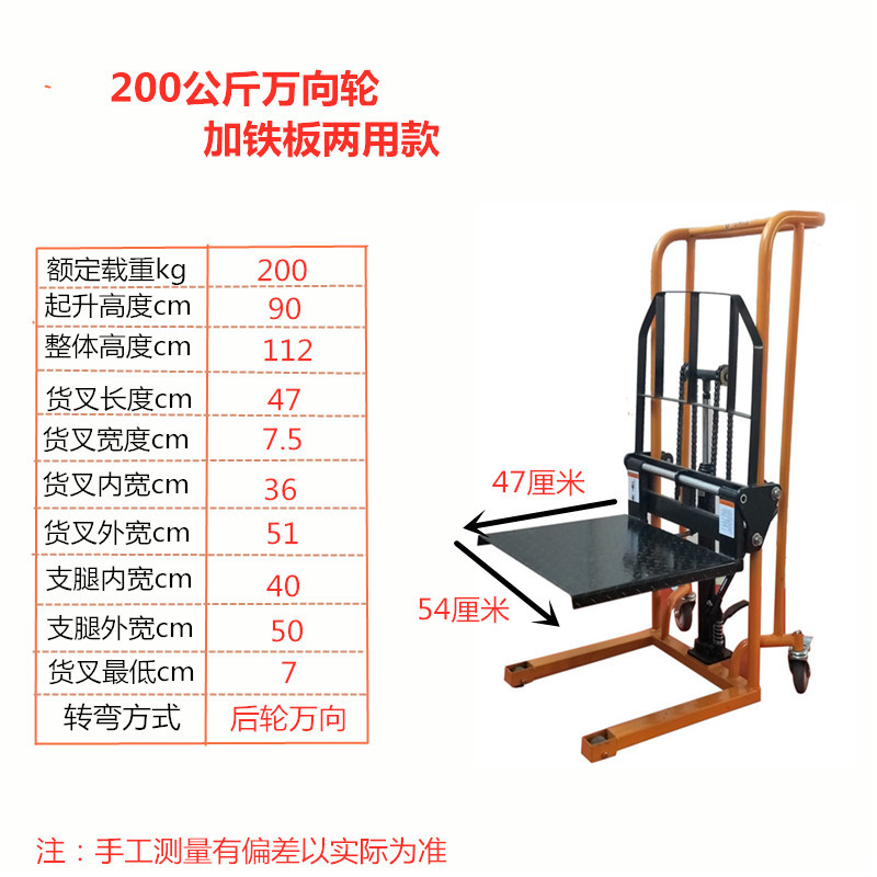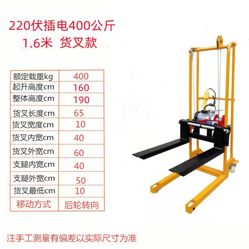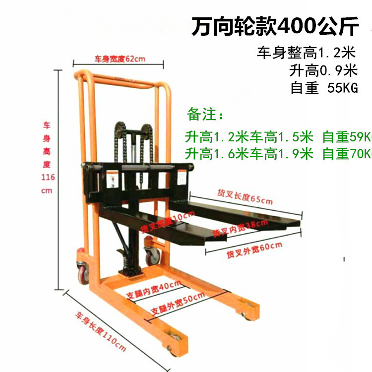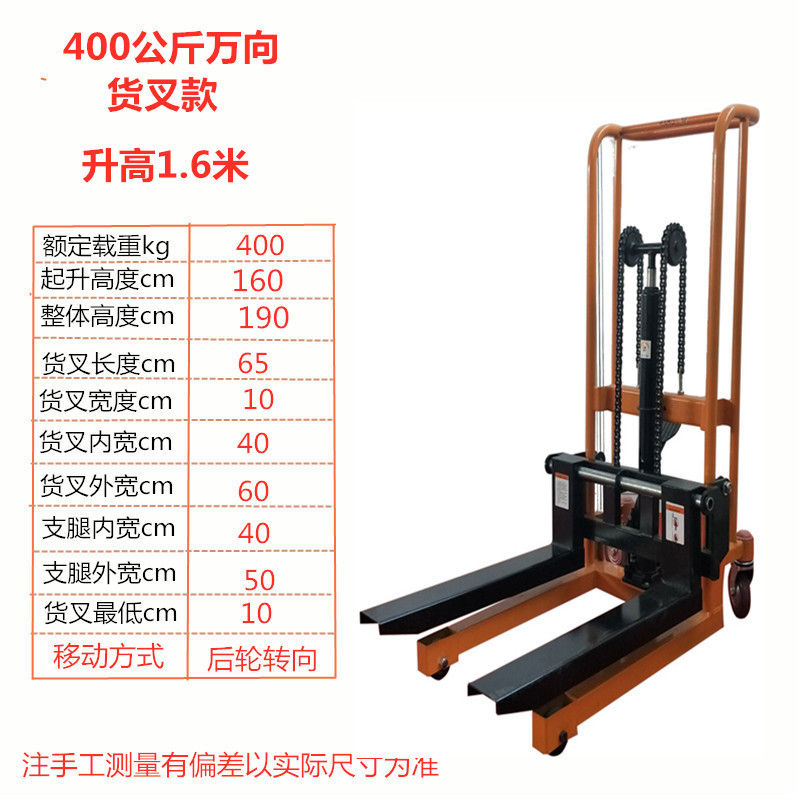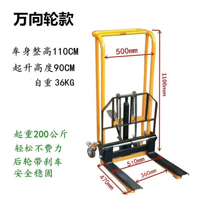 소형 수동 유압 리프팅 머신 취급 및 적재 스태커 전기 리프팅 지게차 가정용 마이크로 핸드 푸시 스태커