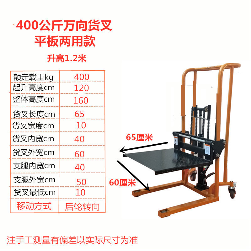 소형 수동 유압 리프팅 머신 취급 및 적재 스태커 전기 리프팅 지게차 가정용 마이크로 핸드 푸시 스태커스토어 가기