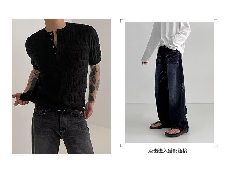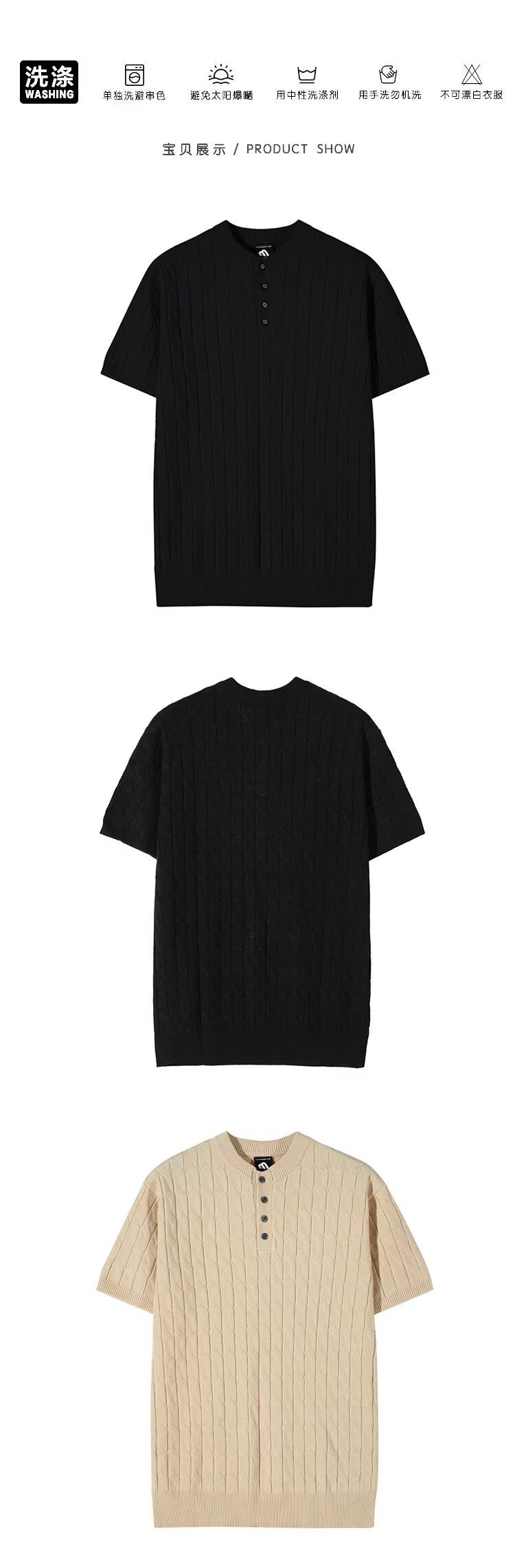 여름 헨리 칼라 니트 티셔츠 남자 반팔 아이스 실크 얇은 트위스트 디자인 한국 패셔너블 루즈 탑스토어 가기